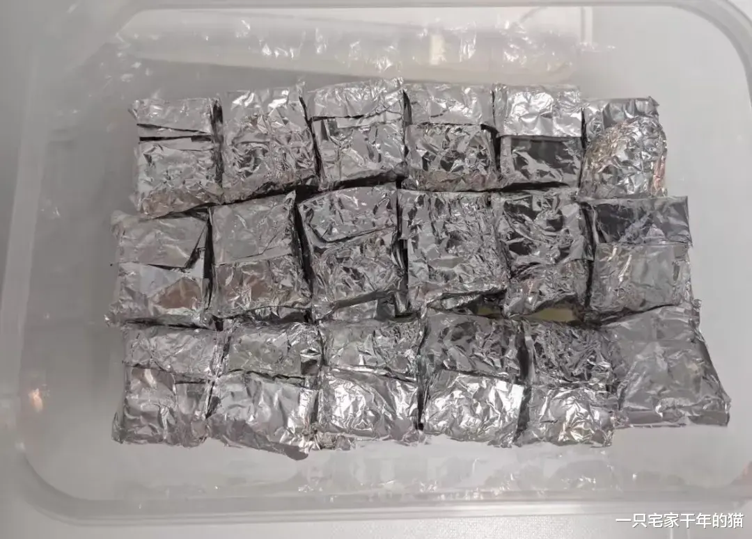 然后放到冰箱保存,用的时候拿出一小块,既方便又保鲜。