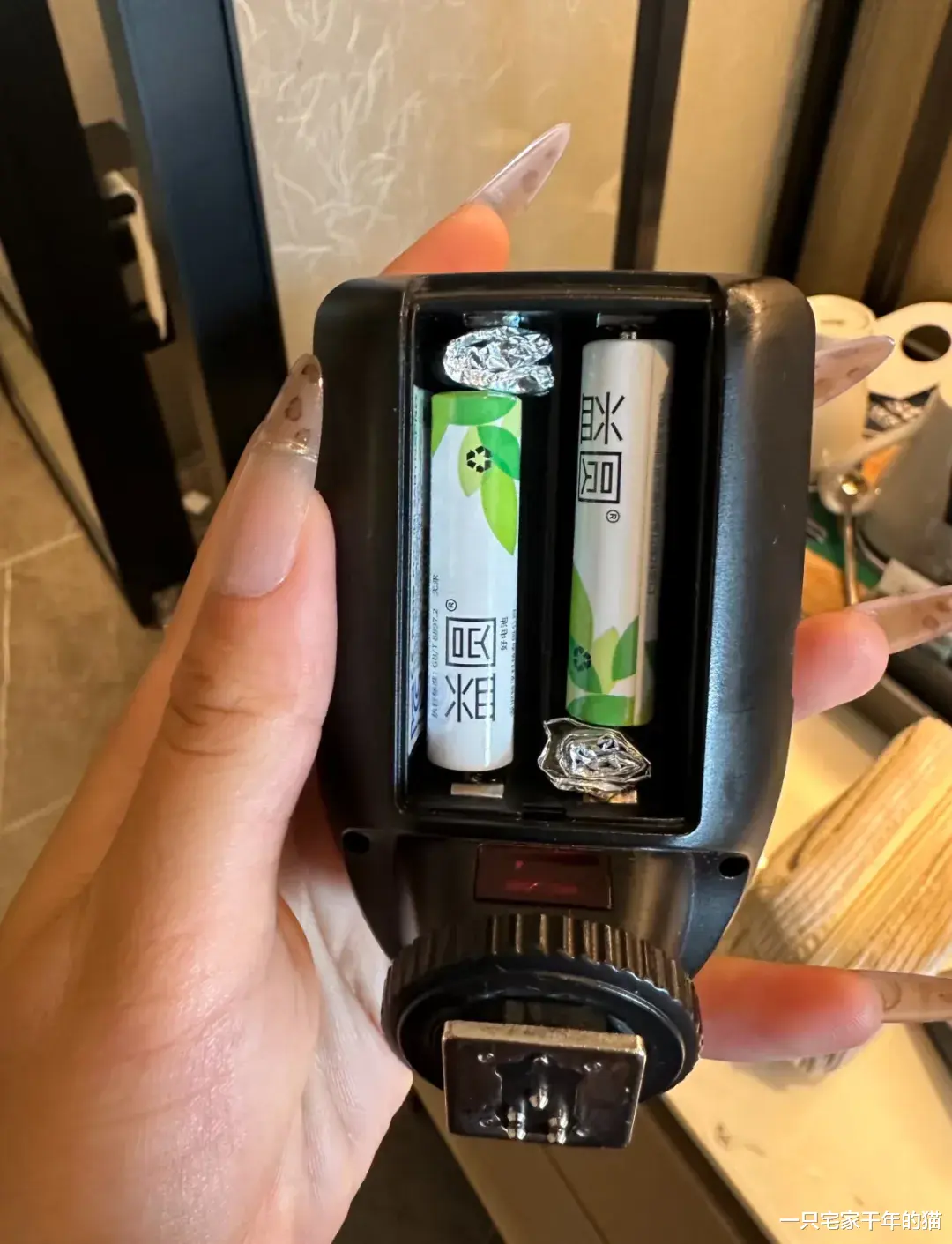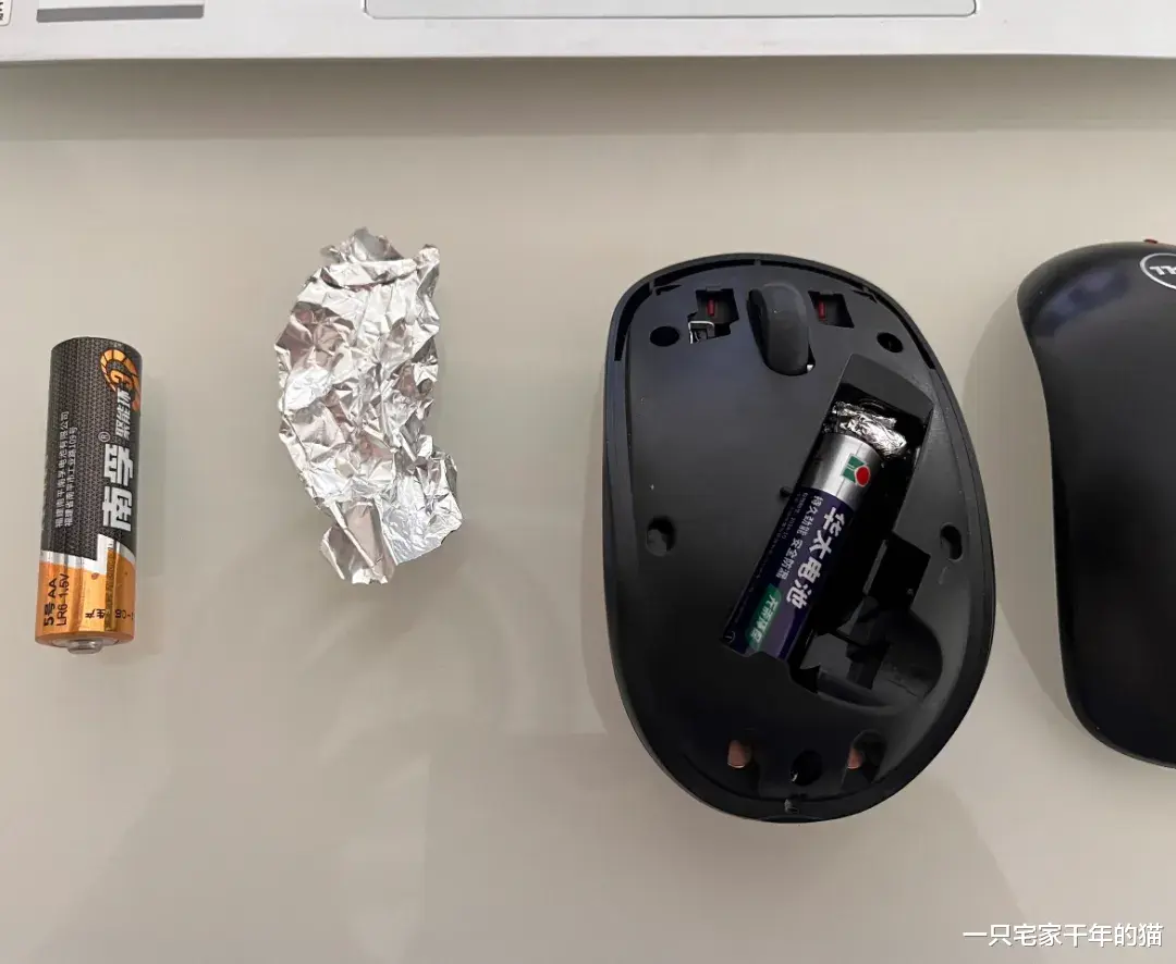 方法和原理也很简单,就是利用锡纸导电的特性,把锡纸折成一个小球,塞到电池盒的其中一端,再放入一个小号电池,就能代替大号电池使用了。