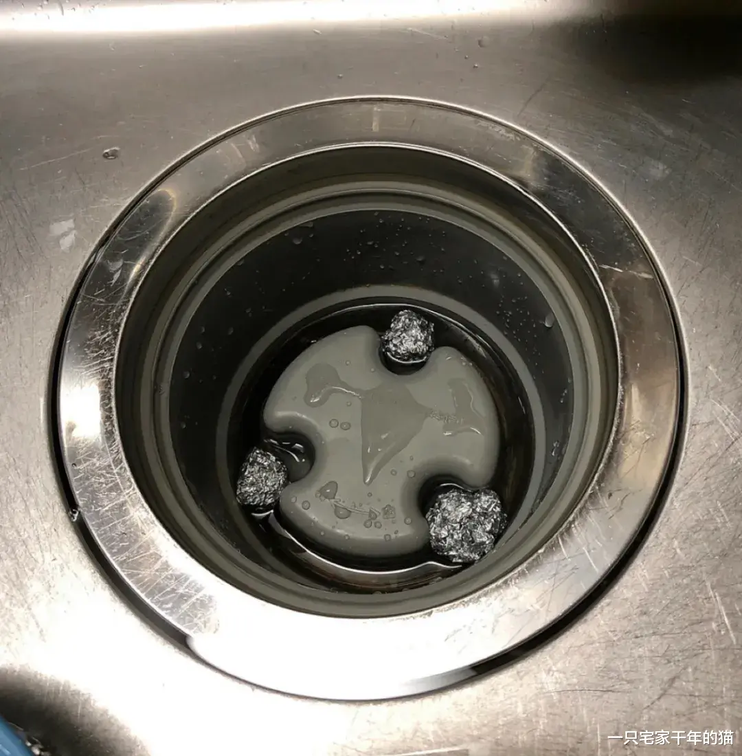 而如果你能把家里没用的锡纸,稍微改一下,团成几个小团,扔到下水口滤槽内。
