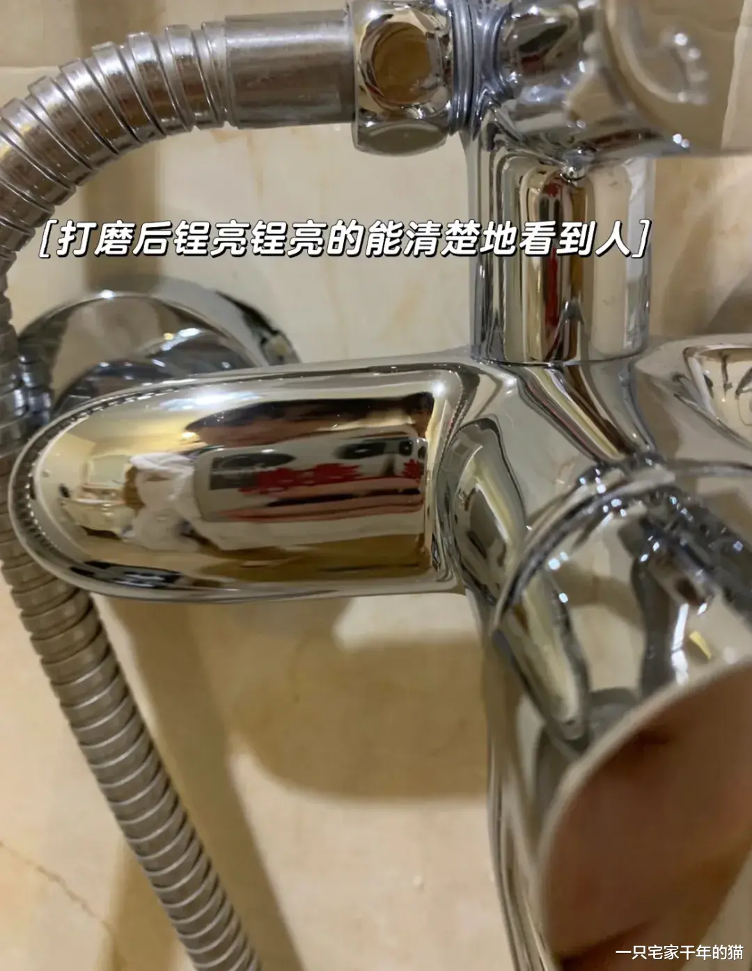 擦完的龙头洁净如新,光彩照人,太牛了。