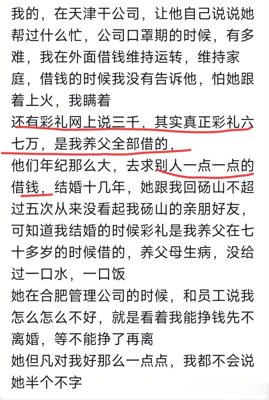 之前被吵三千块彩礼也被厉怀远反转了,他说实际上彩礼不是三千,而是六七万,是七十多岁的养父一点一点的借来的。养母病了,林丽没有照顾一点,还不肯回他农村的家 看不起他。
