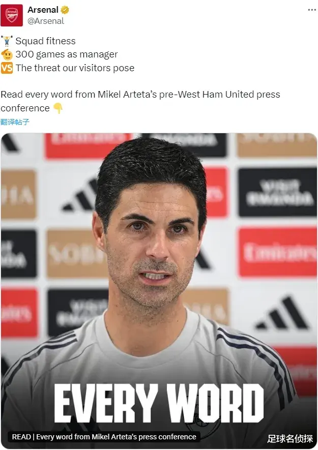 SM的消息不用多说,很可靠,很快就会有其他权威记者跟进的,实际上阿尔特塔在新闻发布会上等于确认了这个报道。