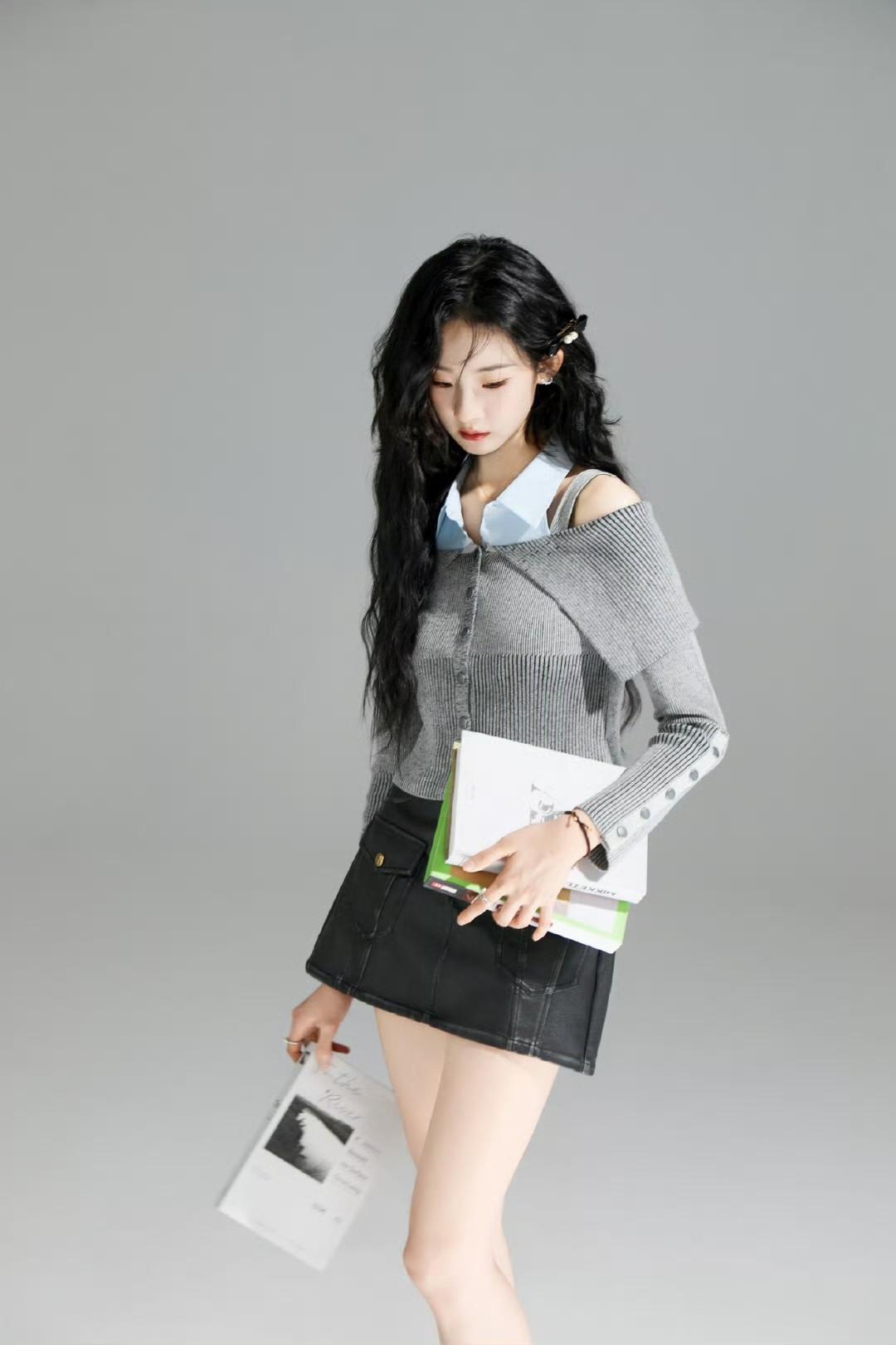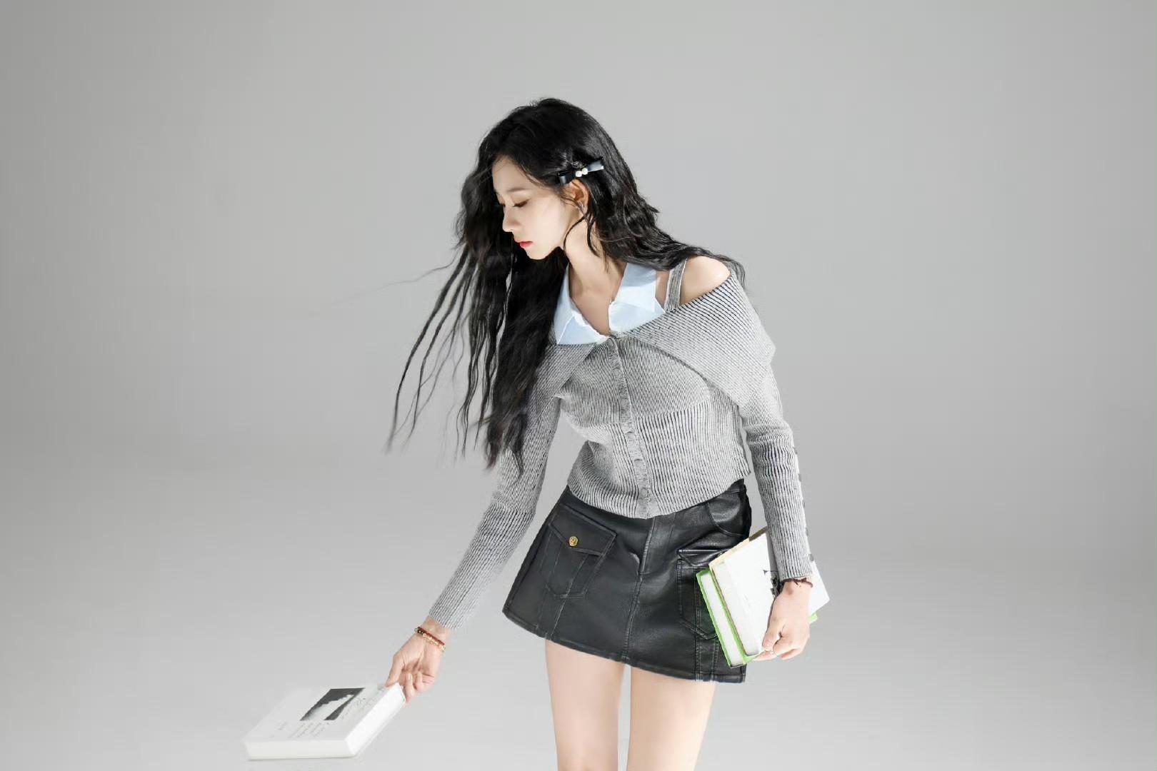 穿搭细节拉满高级感灰调坑条针织衫叠穿浅蓝衬衫,假两件设计自带层次感,袖口的金属排扣细节感拉满,温柔中带着利落。大波浪卷发搭配精致发夹,碎发轻拂脸颊,清冷感瞬间拉满,妥妥的韩系女主既视感。