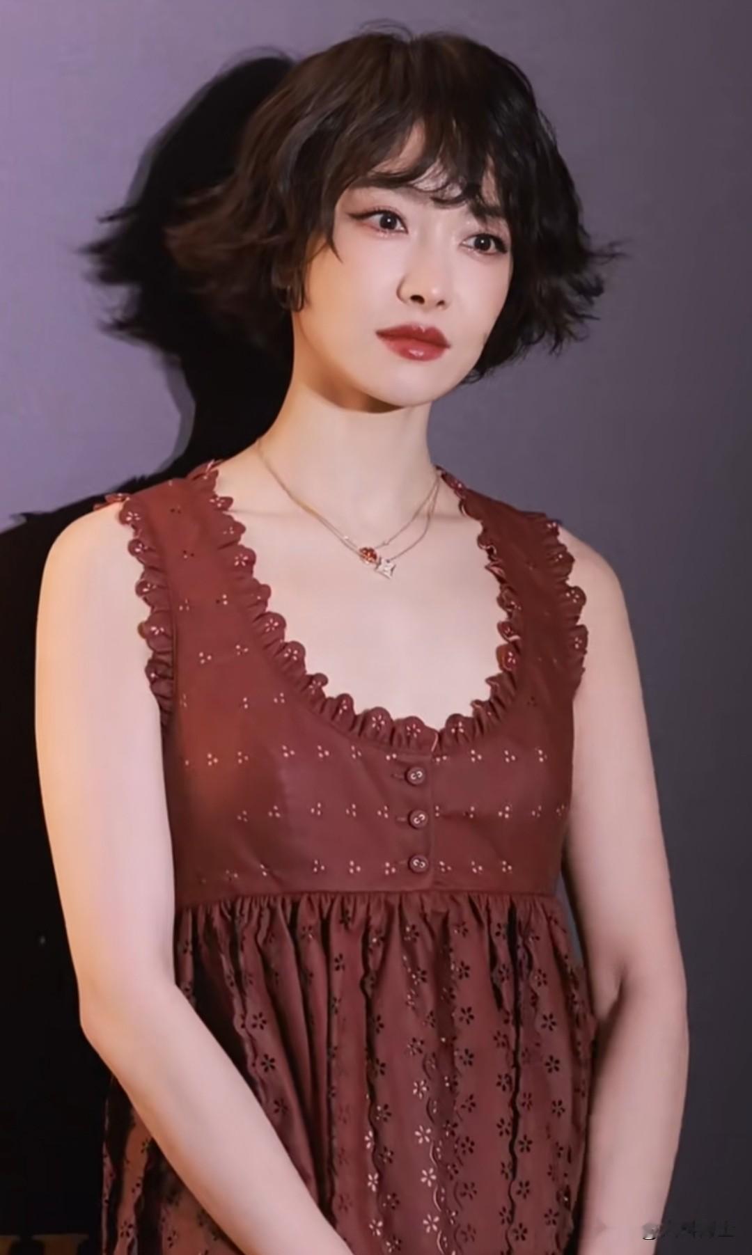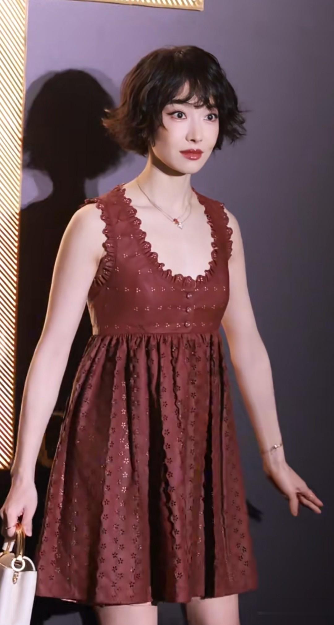 近日,浙江潮州的T风格时尚论坛活动上,宋茜一头短发,妆容精致,身着娃娃裙亮相,让人耳目一新。