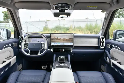 别以为它纯电模式温柔,动力就不行了 —— 这套鲲鹏混动系统可是 “四擎四驱”,1.5TD 发动机加上三个电机(P2+P2.5+P4),综合功率能到 455kW,轮端扭矩更是高达 7700N・m,堪比不少 4.0T 的燃油越野车动力表现。平时在城里开,纯电模式足够用,轻快又安静;要是想偶尔 “撒个欢”,切换到运动模式,踩下电门,推背感立马就来,超车的时候一脚下去,干净利落,没有肉感。