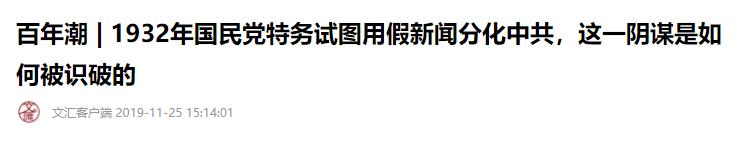 【2】文汇报——《百年潮 | 1932年国民党特务试图用假新闻分化中共,这一阴谋是如何被识破的》
