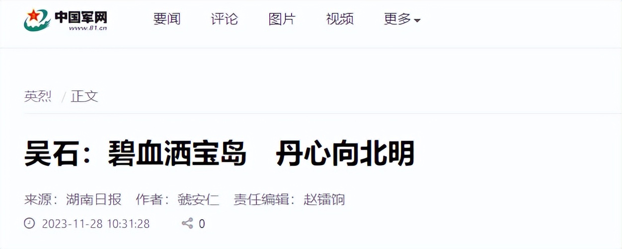 【1】中国军网——《吴石:碧血洒宝岛 丹心向北明》