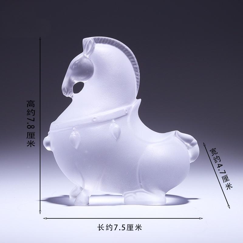 琉璃特有的光影效果,更是为古法琉璃唐马增色不少。当光线照射在摆件上时,琉璃会将光线折射、散射,形成一道道绚丽的光影。从不同的角度观赏,摆件所呈现出的光影效果也各不相同。有时,光线透过琉璃,在桌面上投射出斑斓的色彩,宛如一幅抽象的画作,每一道光影都是大自然与工艺的完美协作;有时,光线在琉璃内部反射,使唐马的身体仿佛被一层光晕环绕,更显神秘而迷人,让人忍不住想要探寻其中的奥秘。这种独特的光影变幻,让古法琉璃唐马在不同的环境和光线下都能展现出别样的风姿,给人带来无尽的视觉享受。