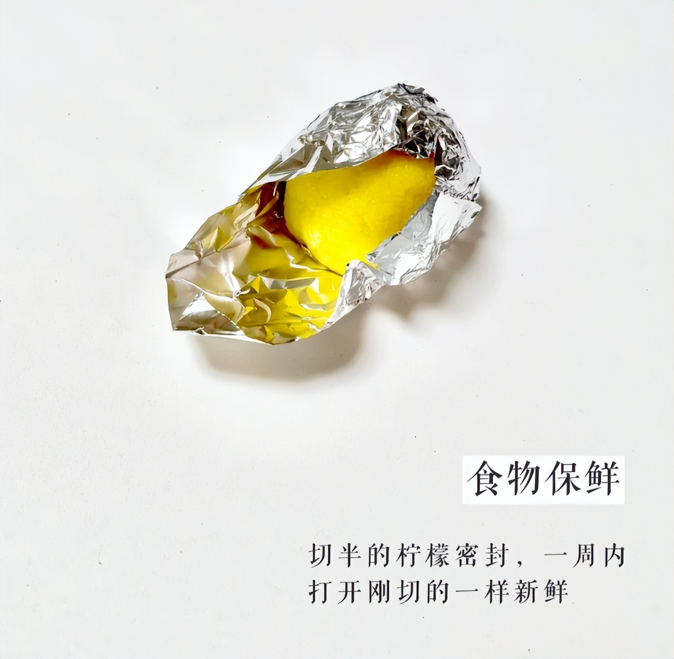 比如切开一半的柠檬,大家就可以使用吸水将其包裹起来放进冰箱的冷藏室,使用锡纸的保鲜效果会更好一些。