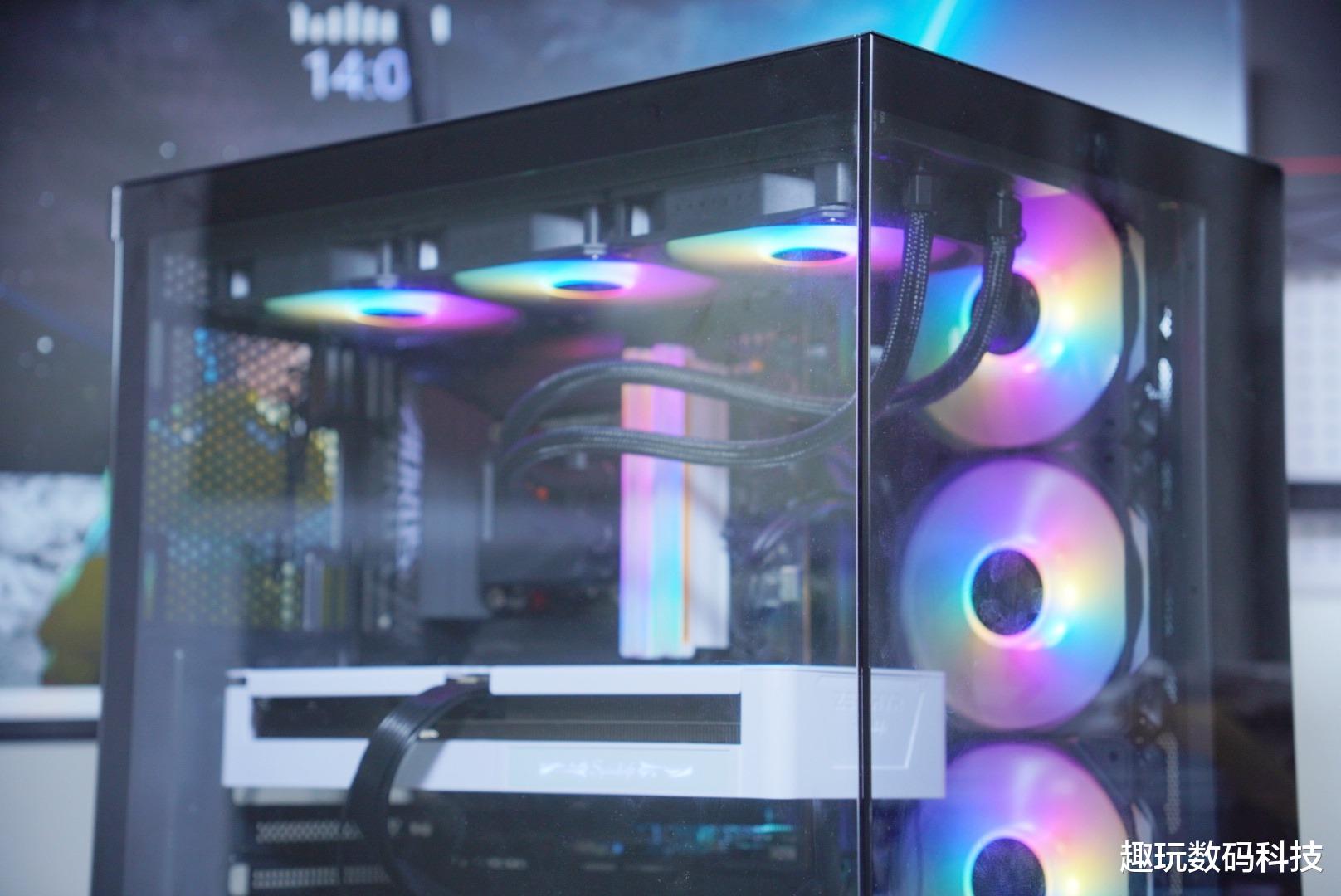 内部布局很合理:电源仓独立,走线空间有 30mm;硬盘位有 2 个 3.5 英寸 + 2 个 2.5 英寸,装一块机械硬盘存游戏 + 一块 SSD 装系统,完全够用。最贴心的是前置支持 360 冷排,后置 120mm 风扇位,最多能装 6 个风扇,散热能力拉满 。