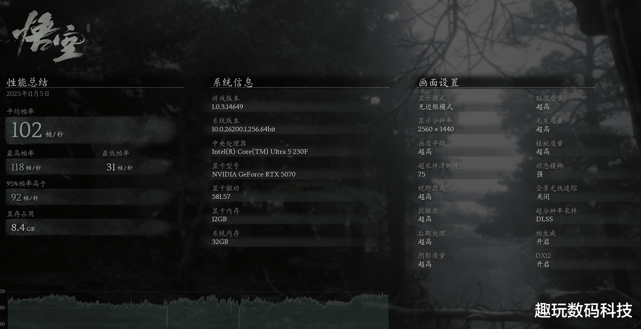 然后是我们黑神话悟空,有一说一,这游戏已经成为了标准测试游戏了哈哈,表现我个人还是比较满意,帧率来到了100帧