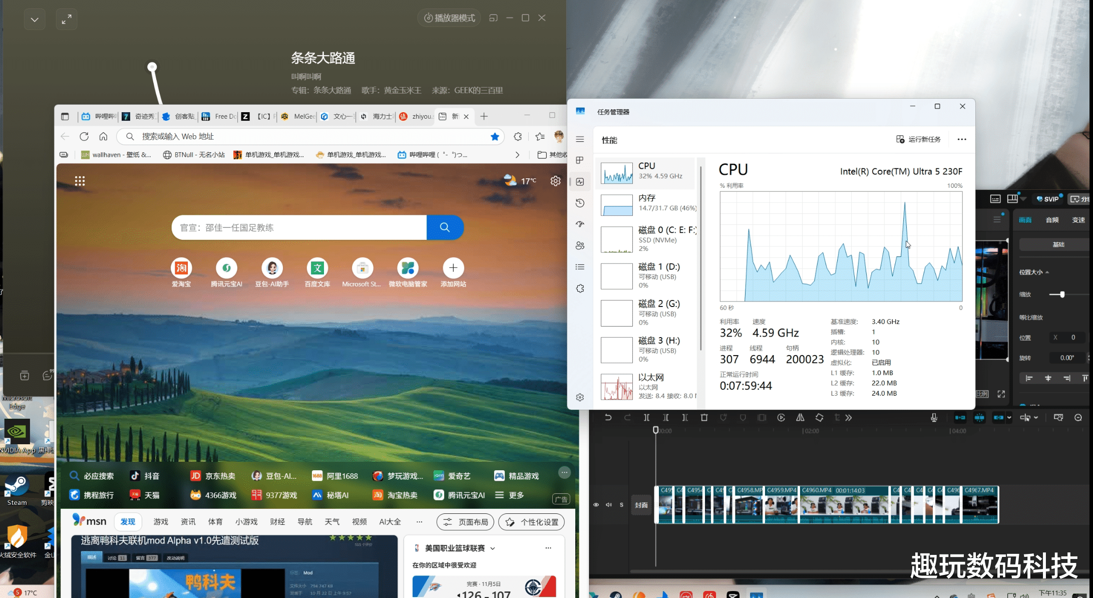 我们直接打来网易云音乐,剪映,和10个浏览器,此时cpu占用50%,操作依然丝滑流畅!并且风扇没有什么太过恐怖的啸叫,用起来是真得,莫得问题呀