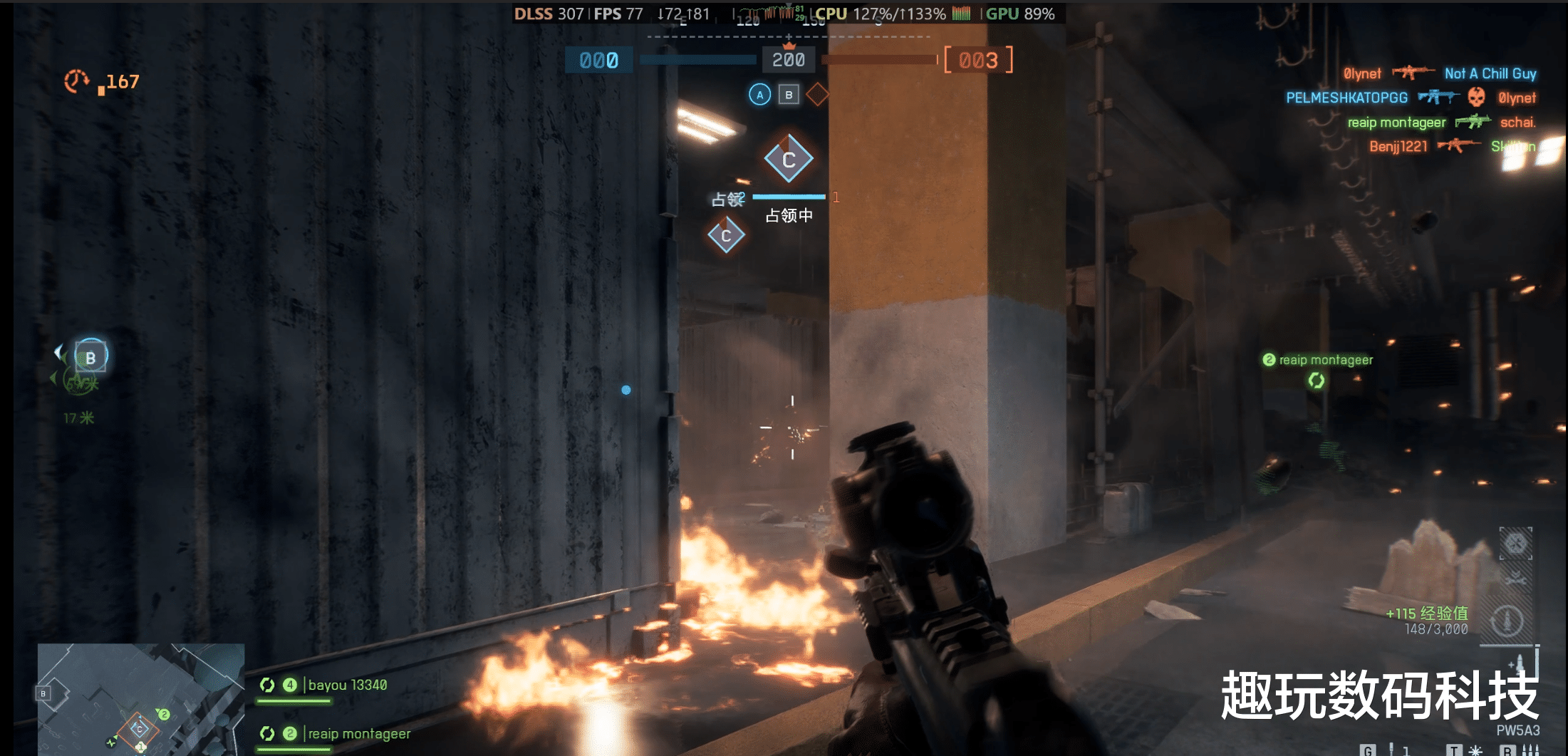 我先来玩的是战地6,主要我之前电脑一玩就爆显存,我也就好这几个网游,战地6的全低画质2k分辨率加帧生成等技术,帧率来到了300帧,玩游戏包没啥压力