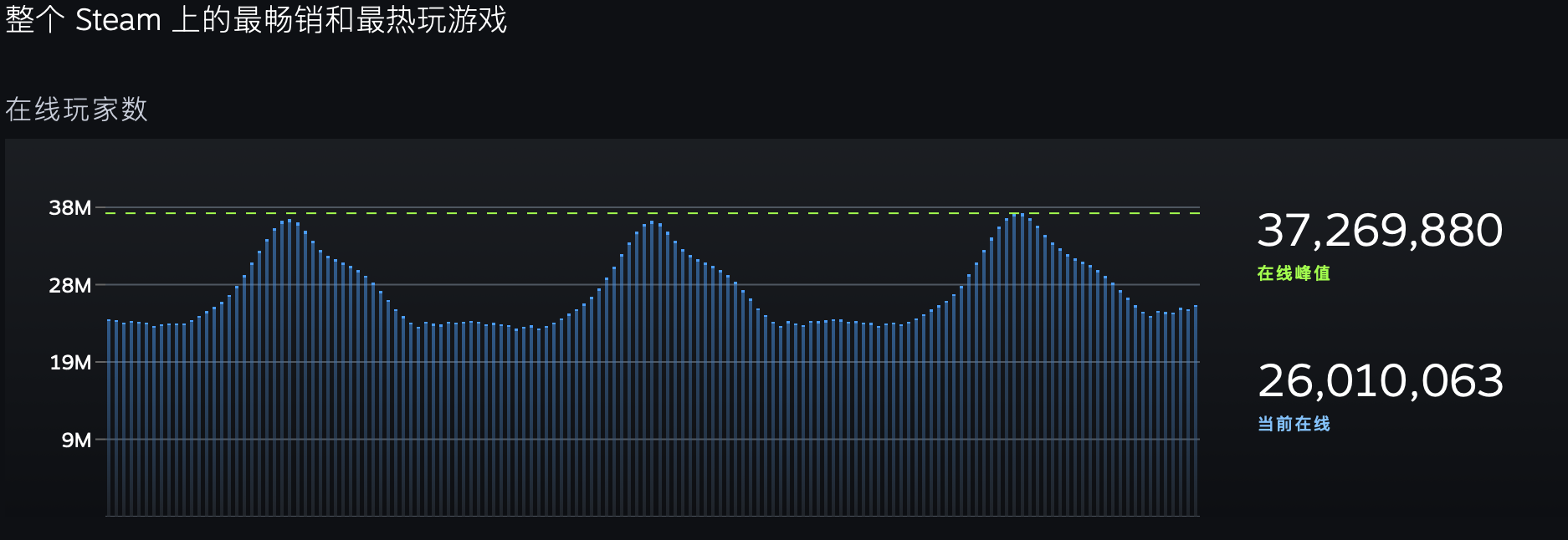 Steam,已然成长为数字游戏发行领域,无可争议的巨头。最新Steam官方数据显示,平台与此同时在线人数,已突破4000万大关,这个数字,在2020年,还仅仅是2000万。惊人的增长速度背后,是Steam对全球游戏生态,日益加深的影响力。
