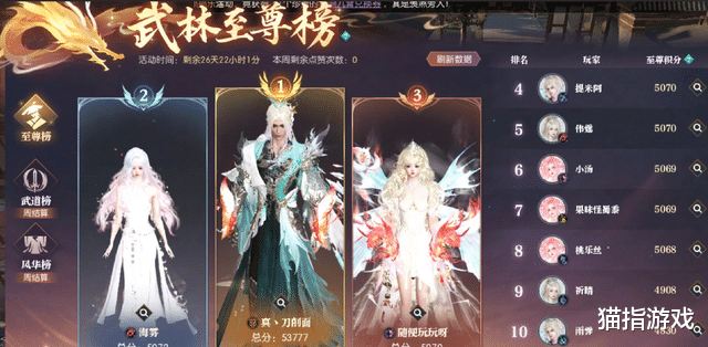近日,逆水寒官方公布了新区的“武林至尊榜”揭榜情况,刀总以领先第二名近2万分的实力,拿下了新区榜一至尊席位,成为全服玩家仰望的存在。