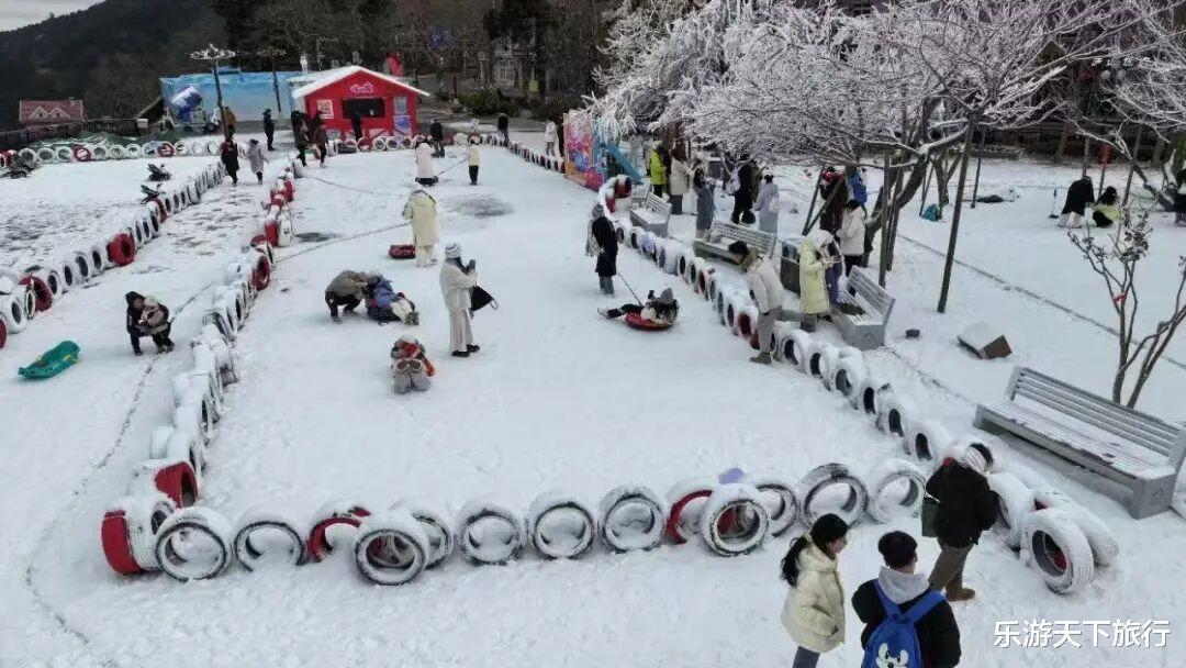 滑雪场有雪滑梯、雪地碰碰球、冰爬犁等轻体验项目,适合家庭出游。