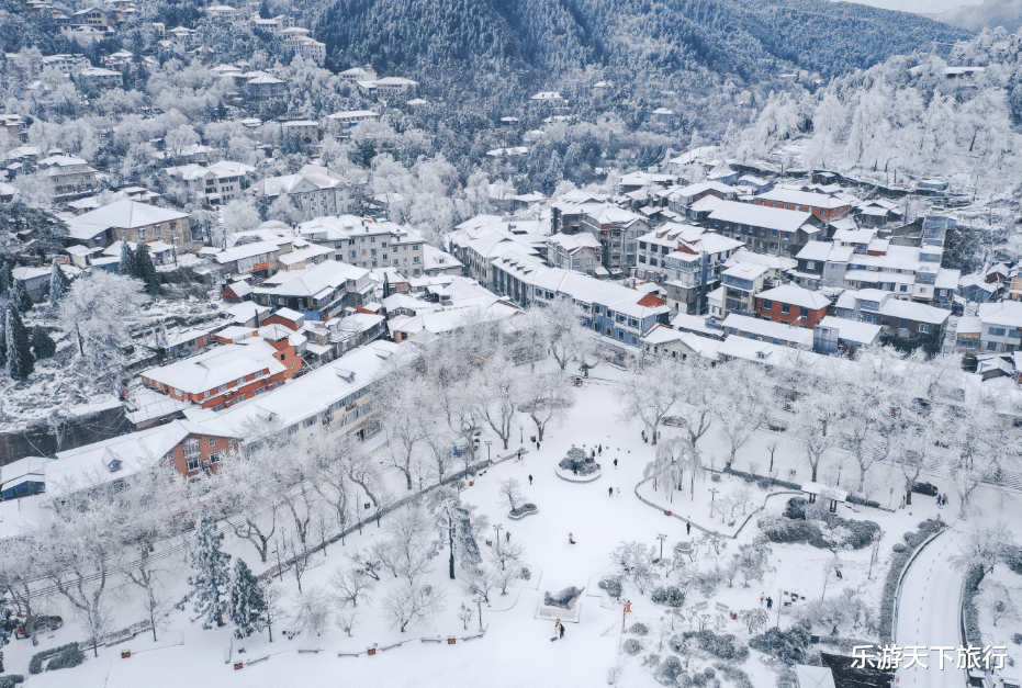 雪后的美庐别墅、庐山会议旧址等老别墅群,红顶覆盖白雪,在静谧中更显历史沧桑感。牯岭街在雪后犹如童话小镇。