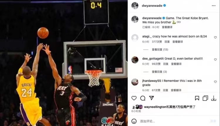 今年824很多的NBA现役以及退役的球星在社交媒体上发布了照片纪念科比!