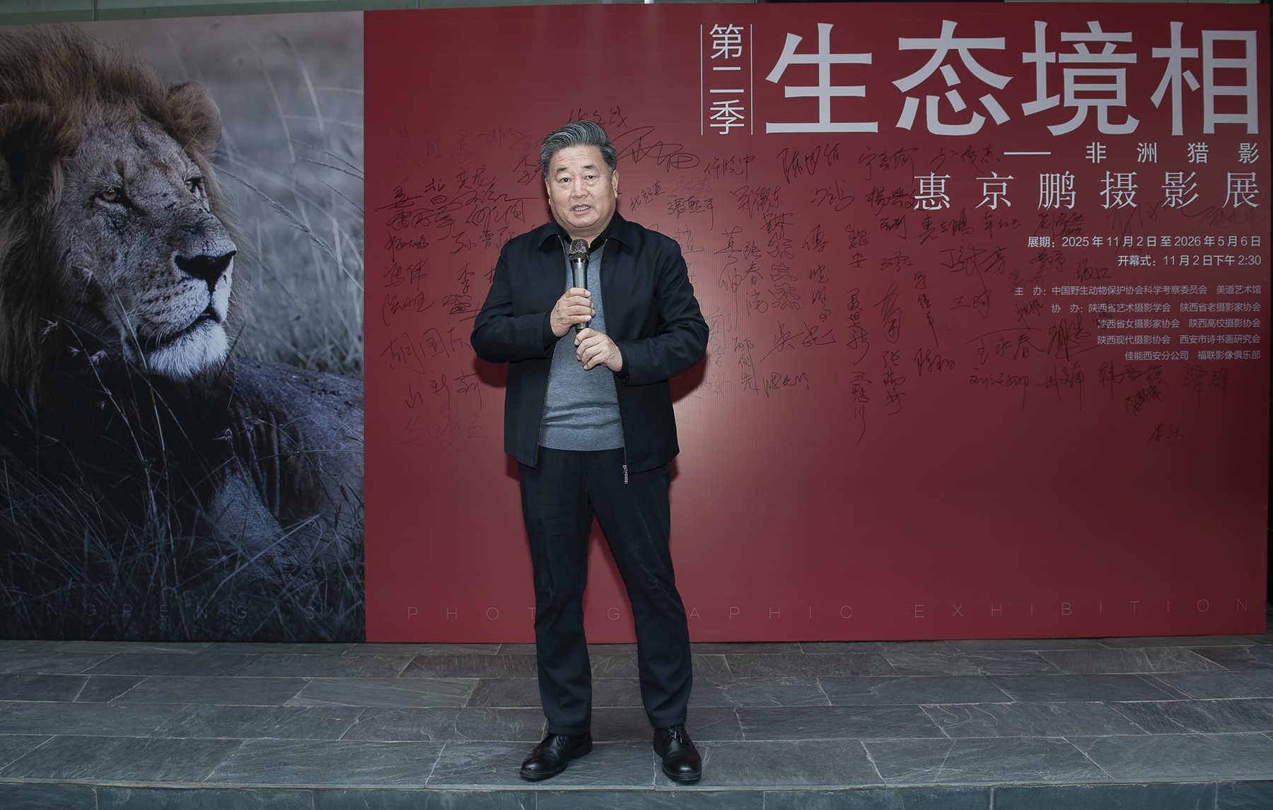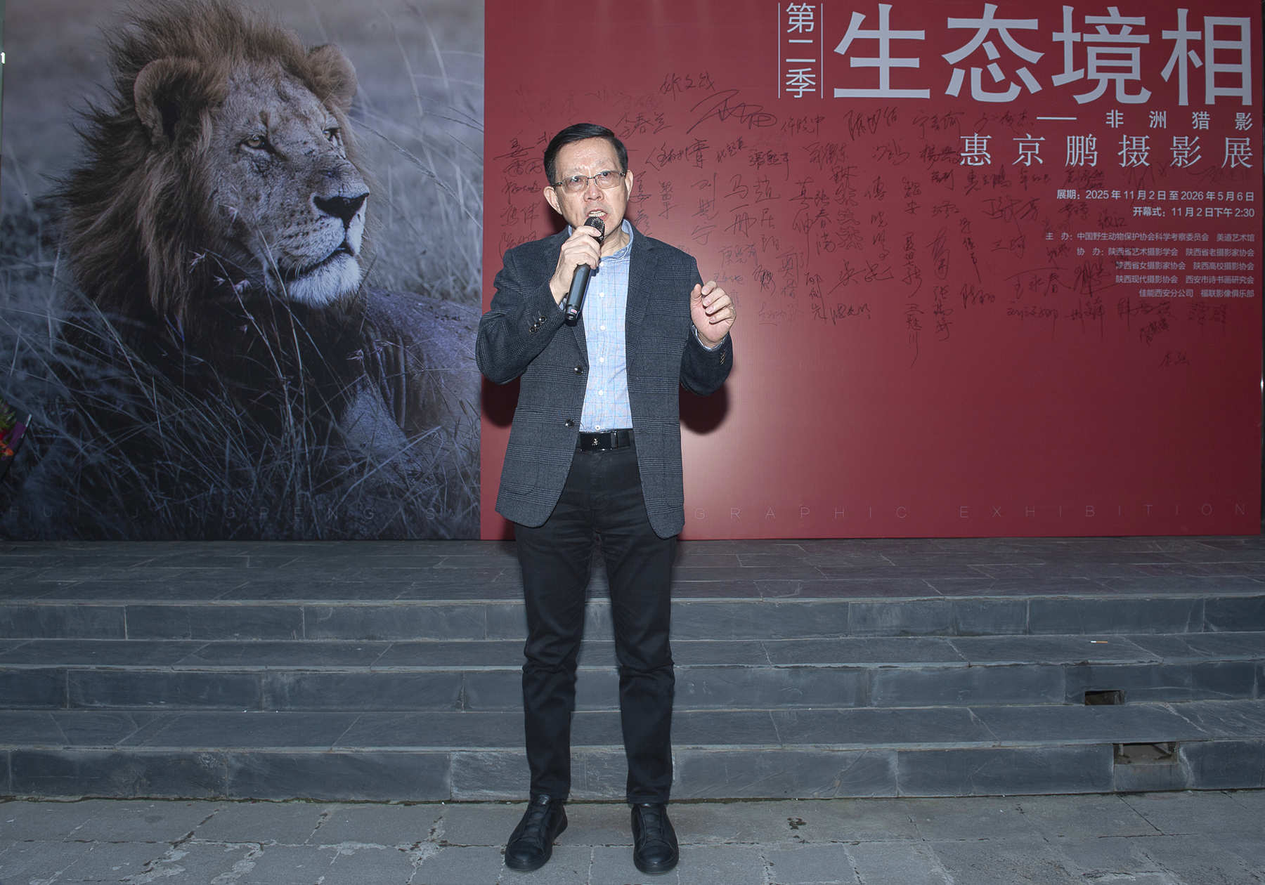 展出的75幅作品均为2023年惠京鹏在非洲历时28天拍摄的最新力作,继续以“生态境相”命名,体现了惠京鹏对野生动物和自然生态保护意识的坚持与深化。武明录先生表示,惠京鹏不仅是杰出的摄影师,也是中国野生动物保护协会科考委的重要成员,他对惠京鹏通过摄影展览为野生动物保护做出的贡献表示感谢。著名画家、策展人罗宁赞誉惠京鹏是西安摄影界的璀璨明星,他以其震撼人心的作品,尤其是非洲野生动物的精彩捕捉,令人叹为观止。罗宁认为,若这些优秀作品不能公之于众,将是艺术财富的巨大损失。在陕西这片文化沃土中,才华横溢的创作者众多,但能放眼世界、驾驭国际艺术语言的艺术家却极为罕见,惠京鹏的作品为三秦大地增添了光彩。
