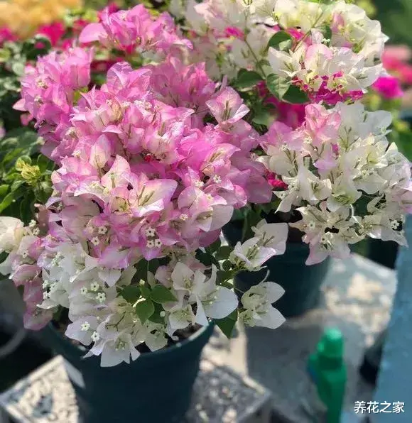 冬天的三角梅都是放在室内养护的,房间里光照普遍不强,我们需要给它补充些肥料来促进光合作用。在三角梅还没有花苞的时候,我们主要使用氮磷钾均衡型的营养肥液,1月2~3次;看到出现花苞后,我们改用如花多多2号、磷酸二氢钾等高磷钾肥料,1周使用1次来促花。(如果室内温度低于15度,三角梅无法正常生长,则不需要施肥。)