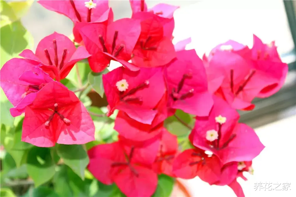 三角梅的开花能力特别好,只要冬天室内的温度维持在15度以上,它就能不断开花。