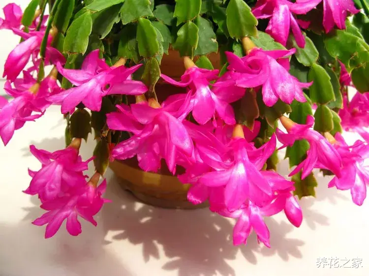 蟹爪兰的花朵颜色艳丽,造型美观,冬季开花,从10月底一直可以持续到翌年2月。很多花友家的蟹爪兰总在开花花后,叶片总是软趴趴的,甚至会倒伏。这种情况除了要多晒太阳以外,还需要给蟹爪兰增加钙肥。增光补钙后的蟹爪兰,叶片会慢慢恢复。