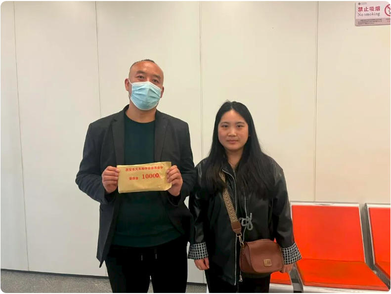 10月31日下午,天禾基金会工作人员前往西安市儿童医院,将爱心善款当面交付棚棚爸爸,专项用于棚棚的造血干细胞移植手术及后续抗排异治疗。善款使用将全程通过基金会官网公示,确保每一份爱心都用在实处。