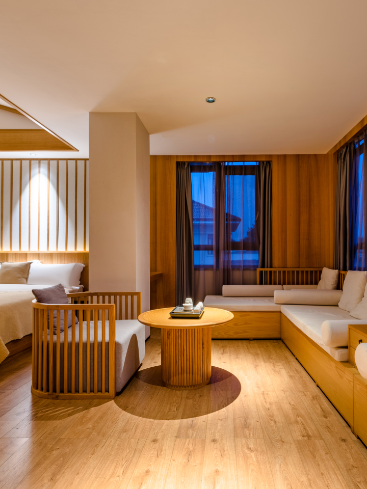 在这里,你可以远离尘嚣,享受宁静而美好time。 选的是福熹的双床房,房间干净、宽敞,景观确实不错,还包含了早餐、围炉煮茶、熹荷茶礼、喂鱼体验、免费功夫茶等等,性价比还是蛮高的