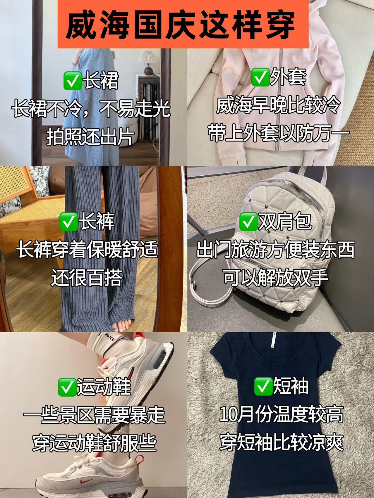 长裙、外套、长裤、双肩包、运动鞋、短袖