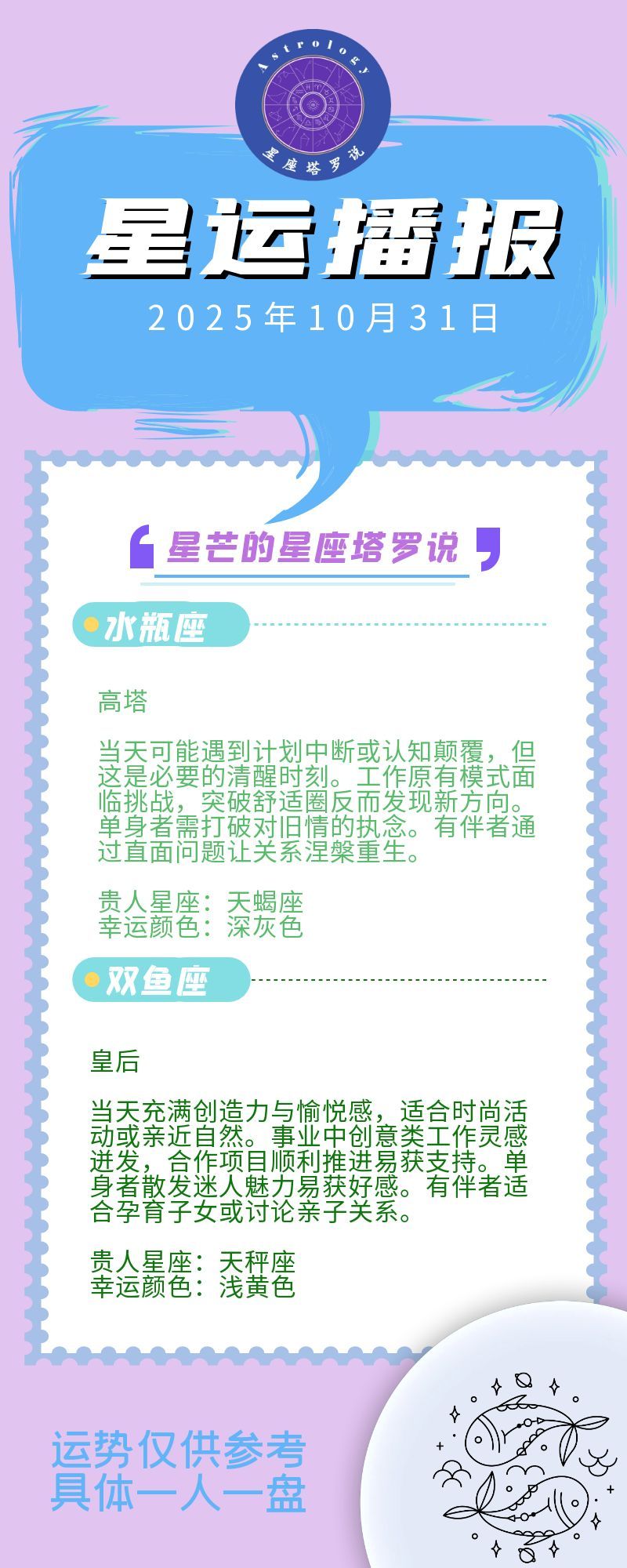 【10.31星运】社交积极日 幸运星座:水瓶、双鱼、天蝎、射手座