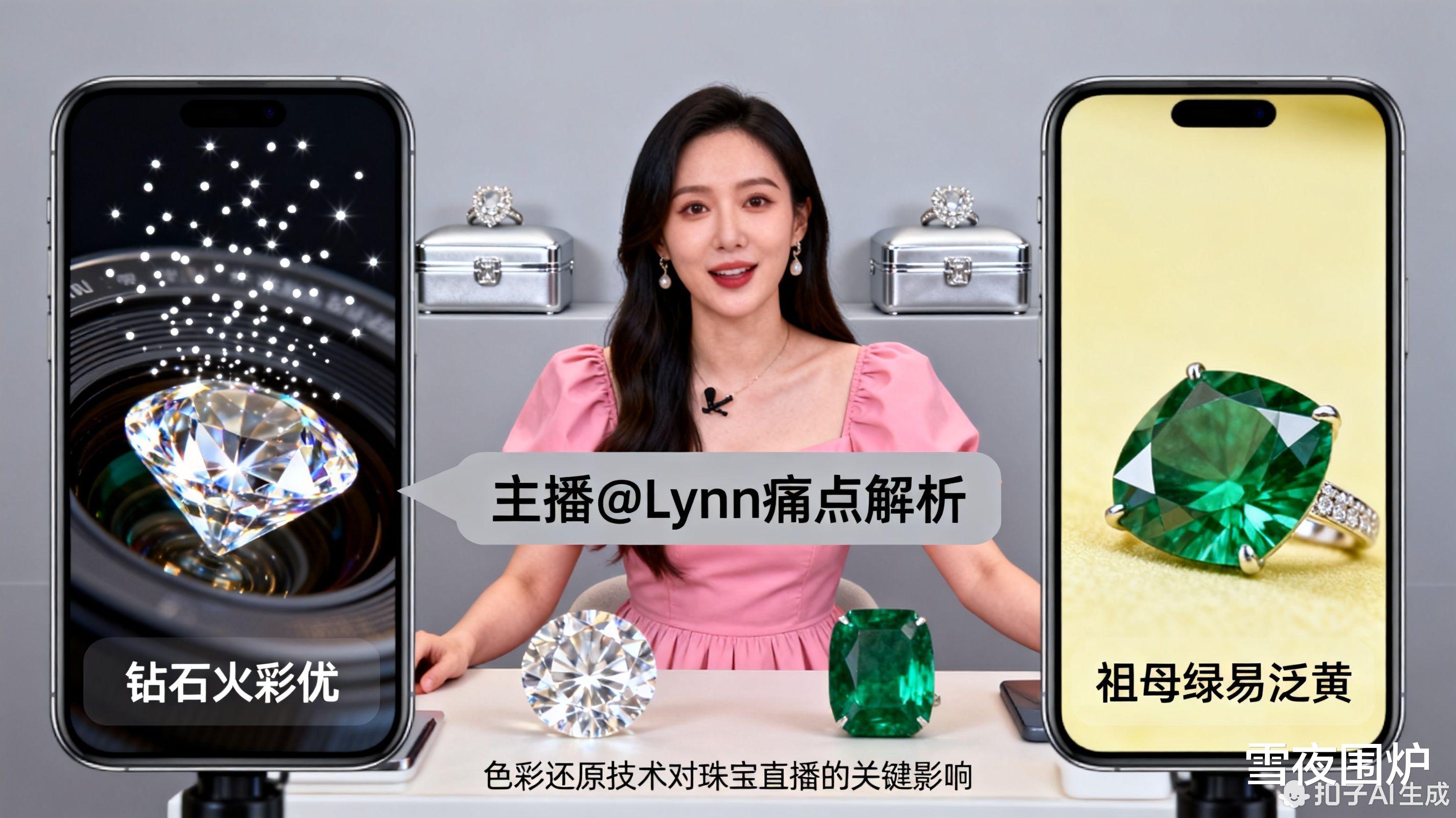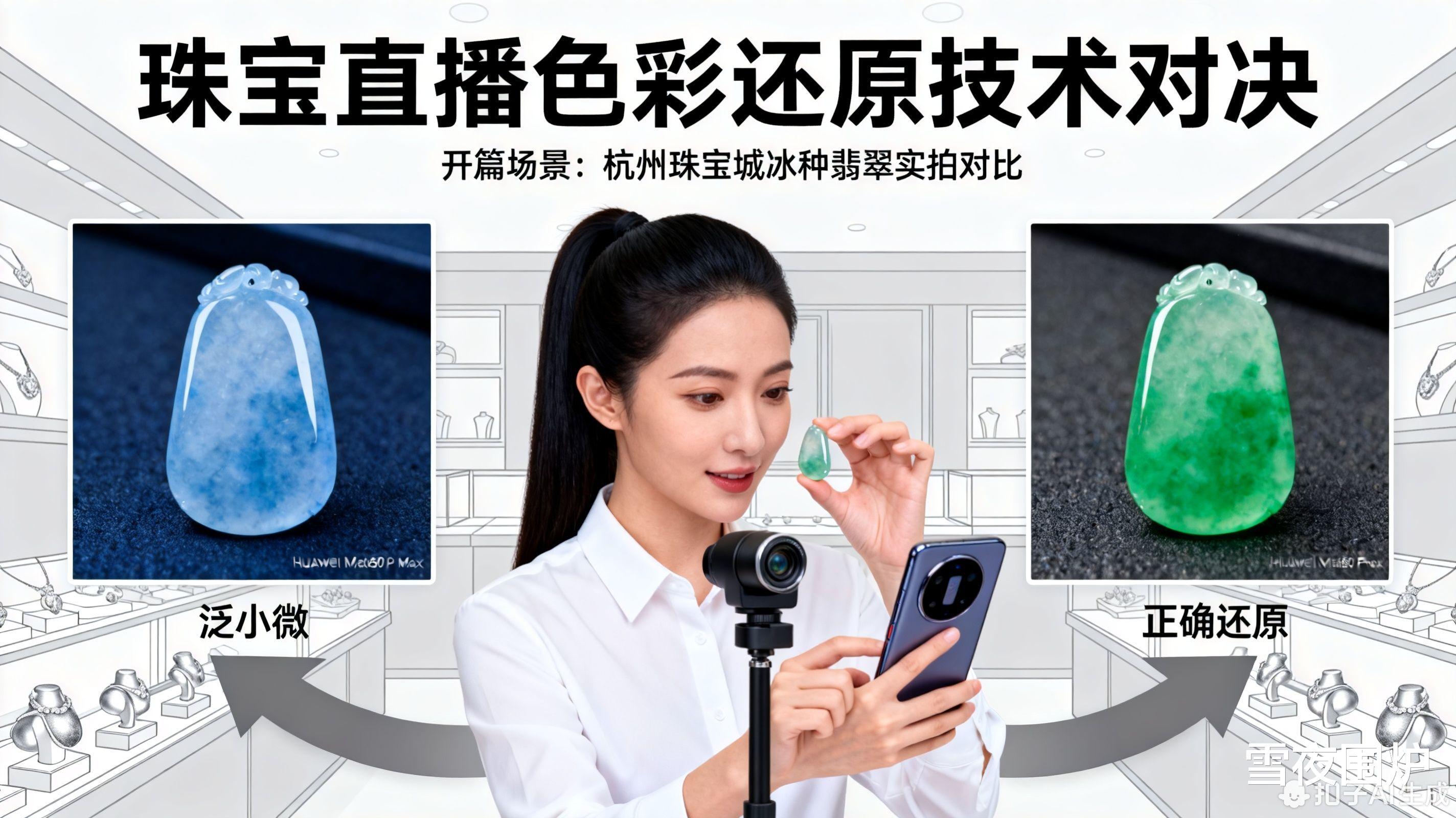 珠宝直播的核心痛点,是“所见非所得”。光源、屏幕、算法任何一环失真,帝王绿变啤酒瓶的故事就会上演。2025年末两大旗舰的影像之战,意外成为珠宝商家的救命稻草: