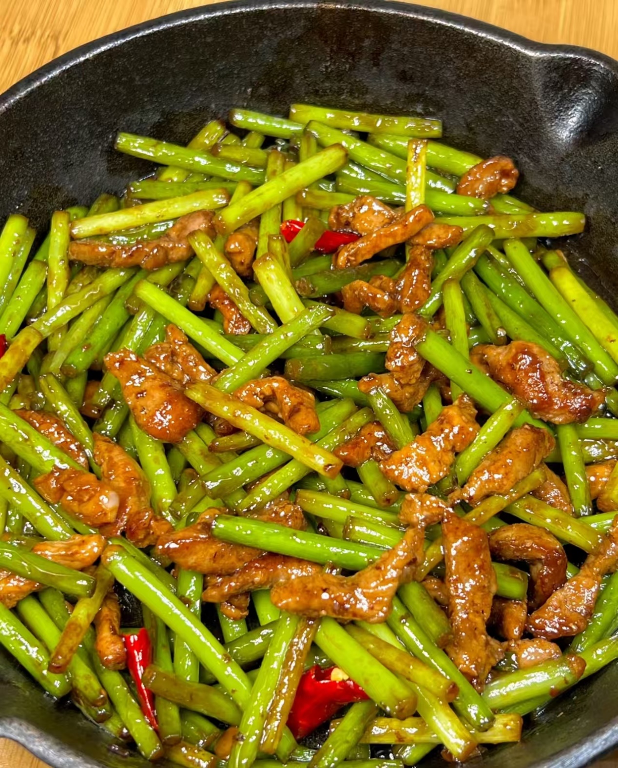 腌肉是“变脸”魔术:一小勺生抽提味、半勺料酒去腥、三分之一勺糖锁鲜,关键加“神秘两兄弟”——半个鸡蛋清和一小撮小苏打。鸡蛋清像给肉片穿“玻尿酸外套”,小苏打则偷偷把肌肉纤维“锯”成小段,抓拌到“黏手拉丝”静置十分钟,肉丝瞬间从“硬汉”变“暖男”。蒜苔段别直接下锅,水开滴两滴油、撒一撮盐,焯水三十秒,颜色从“军绿”升级“翡翠”,还能提前“热个身”,炒时省时间,脆度值拉满。