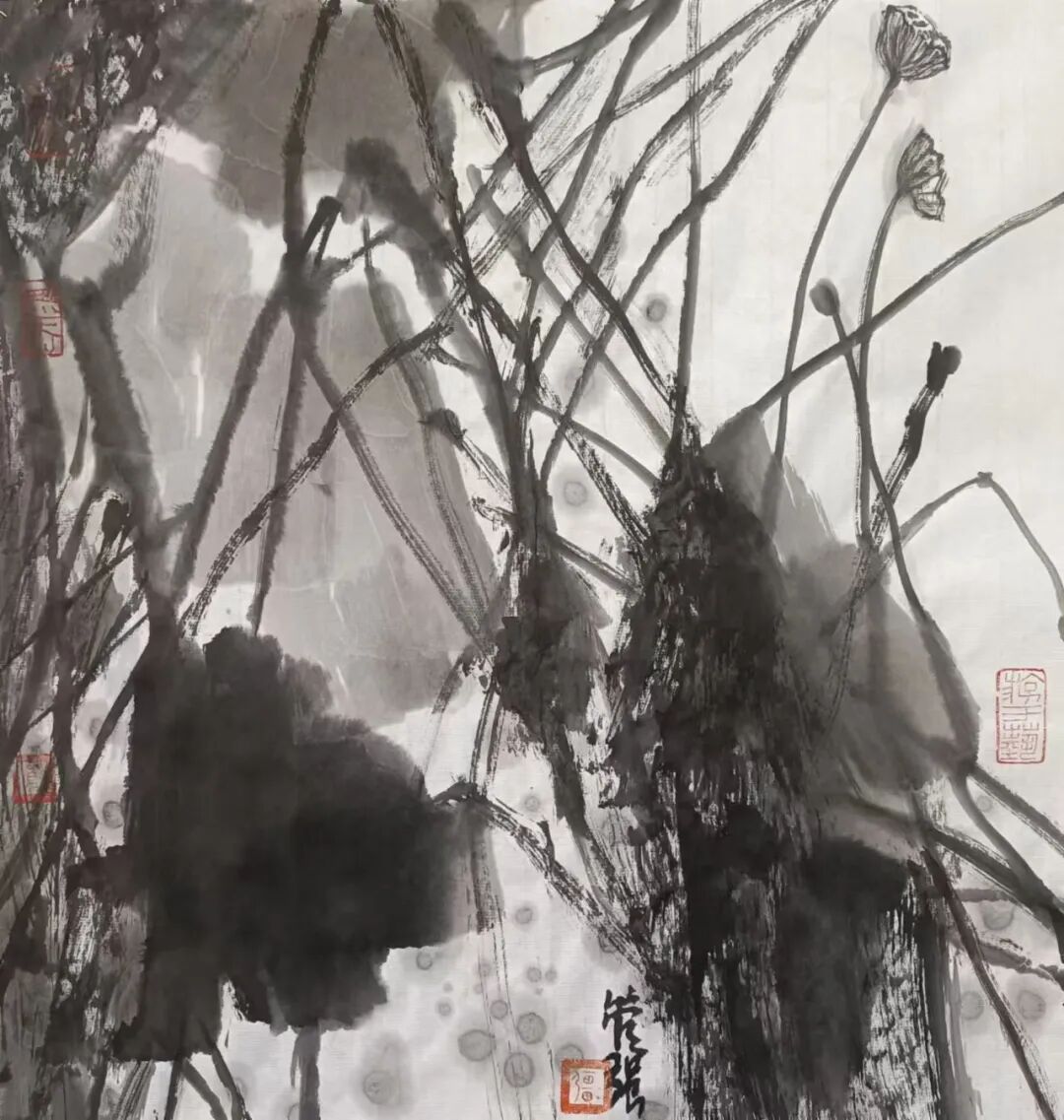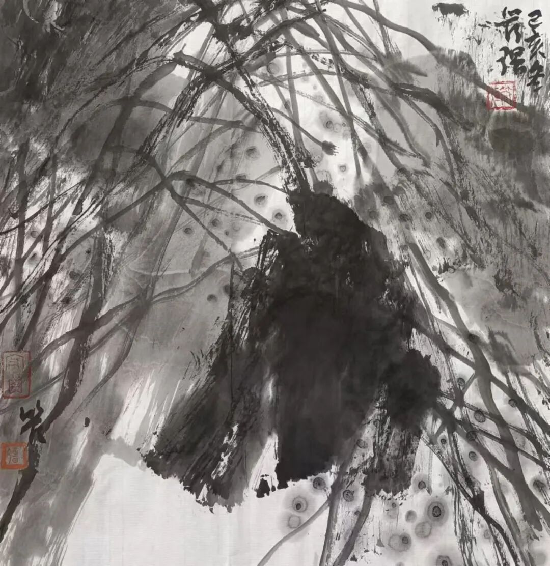 在他的造型空间构造中,灵透、层叠、明彻,一层递一层,凝聚着某种想像,以图深刻地表达对象与对象之间的空间关系,想找到超自然的巨大力量,以追寻到最真实的震撼心灵的感觉出现,从而转换为自己的艺术语言形式。其干劲很像“愚公移山”,又好像还能回到自然之中,重新去触摸它的真实,努力于把感觉凝铸为形式。其实,在石涛的画中,也有一种强烈的重返自然的精神,以其艺术形式实现了一种对自然的抚摸,在画面上呈现出灵魂的释放,如同幽灵般地飘出,充满了东方了民族文化的神秘色彩。