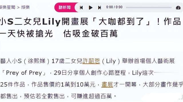 近日,小S二女儿Lily许韶恩在湾湾举办了个人首场画展《Prey of Prey》。