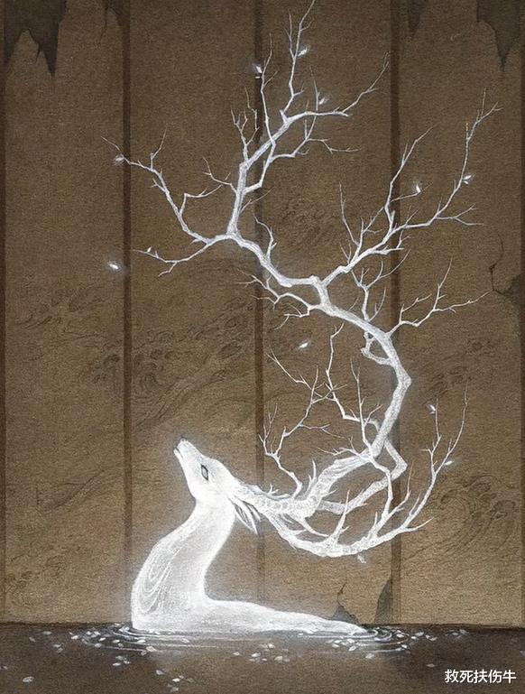 比如画册里《白鹿 夫诸》这图,这个鹿角就是个重灾区,印象比较出名的就有两次,一次是被王者荣耀瑶瑶出皮肤直接被做成动画,一次是被逆水寒当成素材使用。