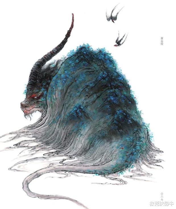 都是丑丑的感觉,杉泽对兕的独创设计很多,《观山海》中对此进行了大胆的艺术重构,他为兕赋予了浓密的青白色渐变毛发、独特的山形背脊结构、眼角下方的红色纹样,以及具有曲线美的独角形态。