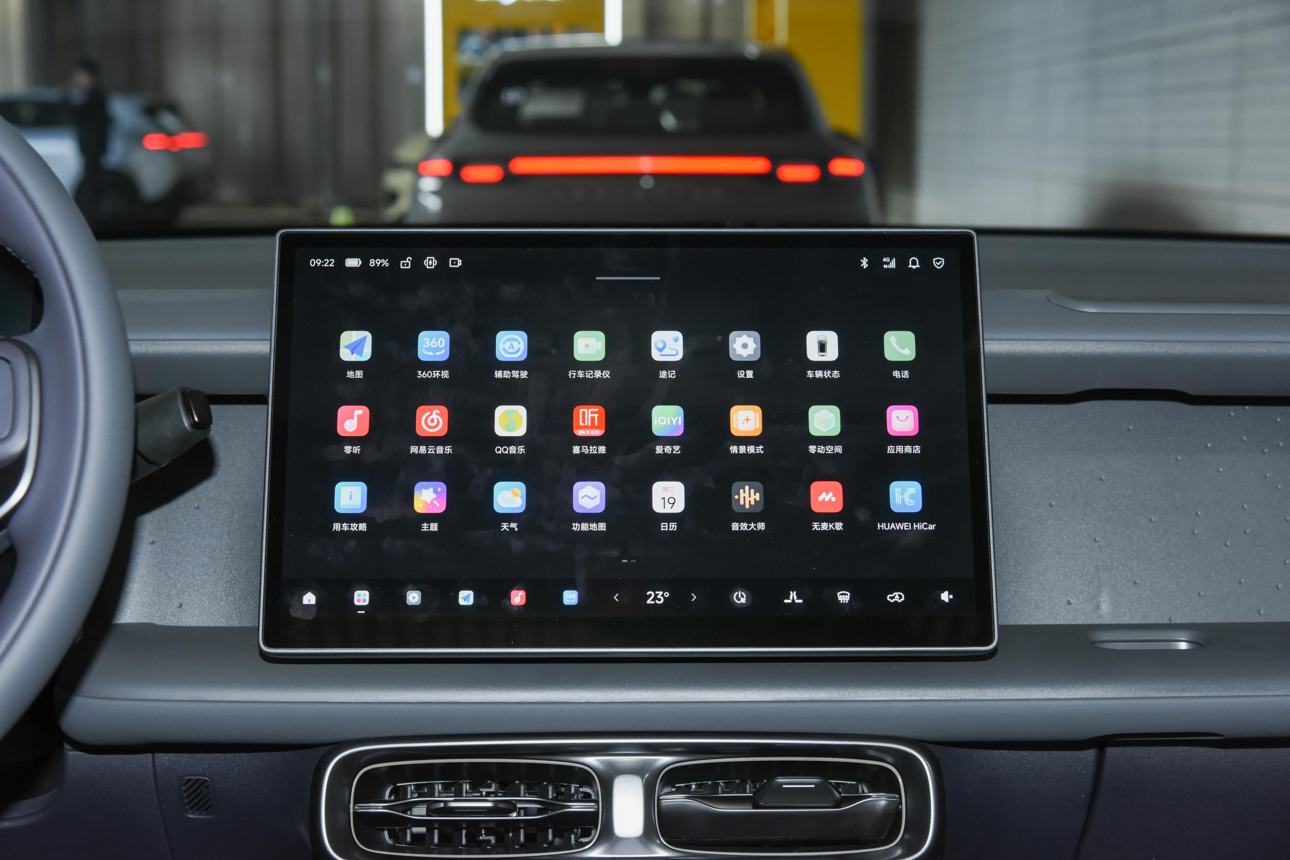 拉开无框车门坐进Lafa5的车内,那质感完全超出了我的预期,根本不像这个价位的车型该有的水准。车内用的是超椭圆数字曲面设计,还搭配了256色氛围灯,我晚上开车的时候发现,氛围感直接拉满,不同场景切换不同颜色,看着特别舒服。内饰有速域紫、驰影灰、竞速灰三种配色可选,其中竞速灰版本真的太对我这种运动爱好者的胃口了,Nappa全粒面真皮和仿麂皮超纤绒的组合,我用手摸上去觉得细腻又柔软,触感特别好。