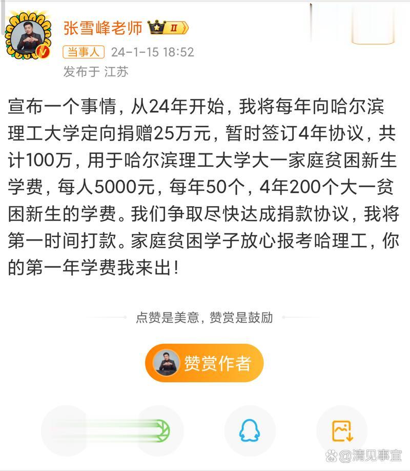 他的社交平台里,很少晒豪车名表,也很少晒高端的生活,晒得最多的,是一张张公益捐款的回执单,是学生们发来的录取喜讯,是家长们发来的感谢留言。