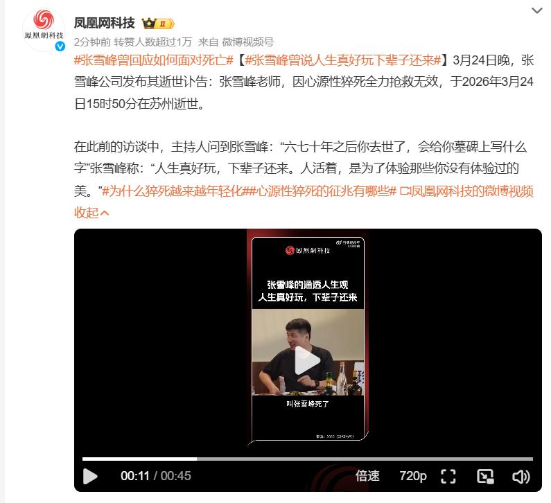 3月24号晚上近十点,张雪峰个人社交平台的头像突然变灰,他所在的公司也正式发布了讣告,明确说他因抢救无效离世。