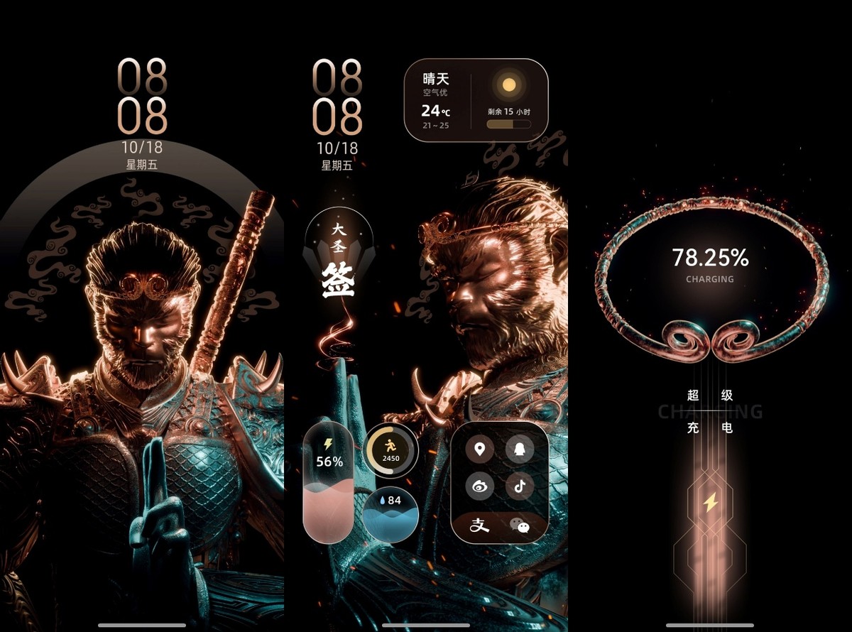 对了,这个主题是会员限定的。大家开通会员后,就能随心打扮手机了。我还特别喜欢《行者悟空》的主题,视觉冲击力很强。特别是充电时会有“金箍圈”特效,在桌面上还能抽“大圣签”,互动性做得很足。