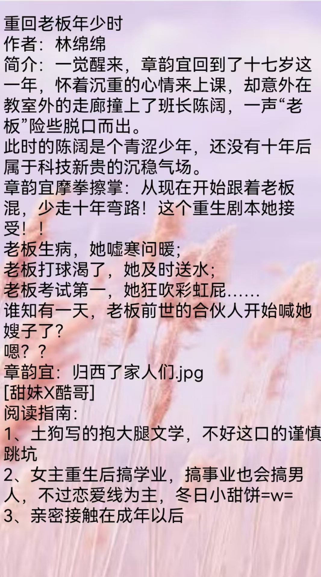 二、《重回老板年少时》作者:林绵绵文章字数:356604字(完结)