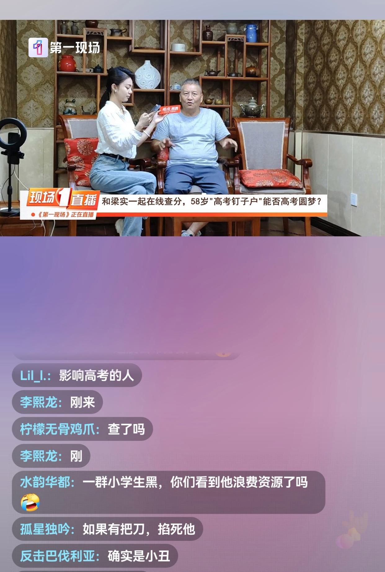 6月25日,四川省高考成绩发布,高考狂人梁实早早地坐在媒体的直播间内,等待查分,在和主持人互动时,网友看法不一。