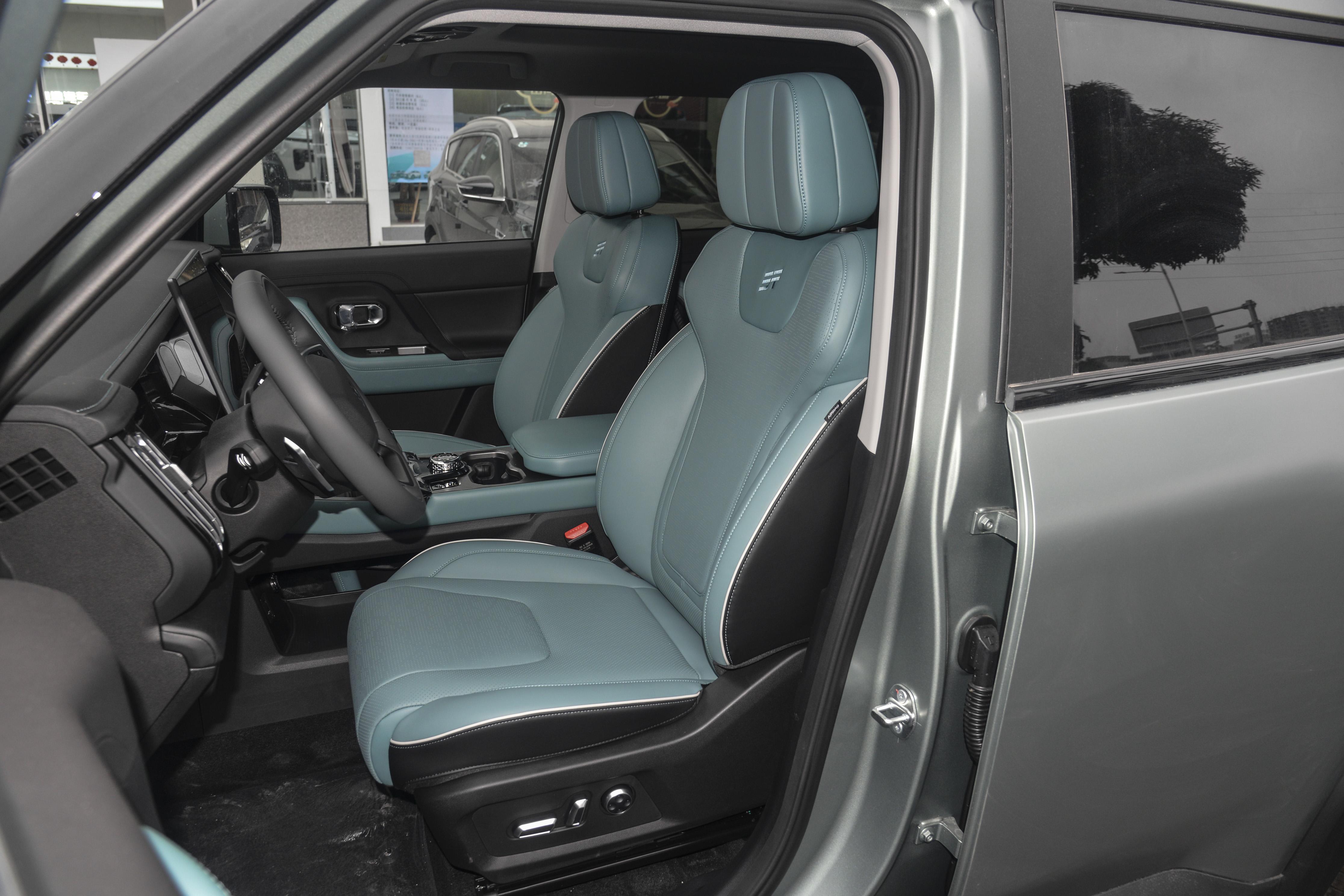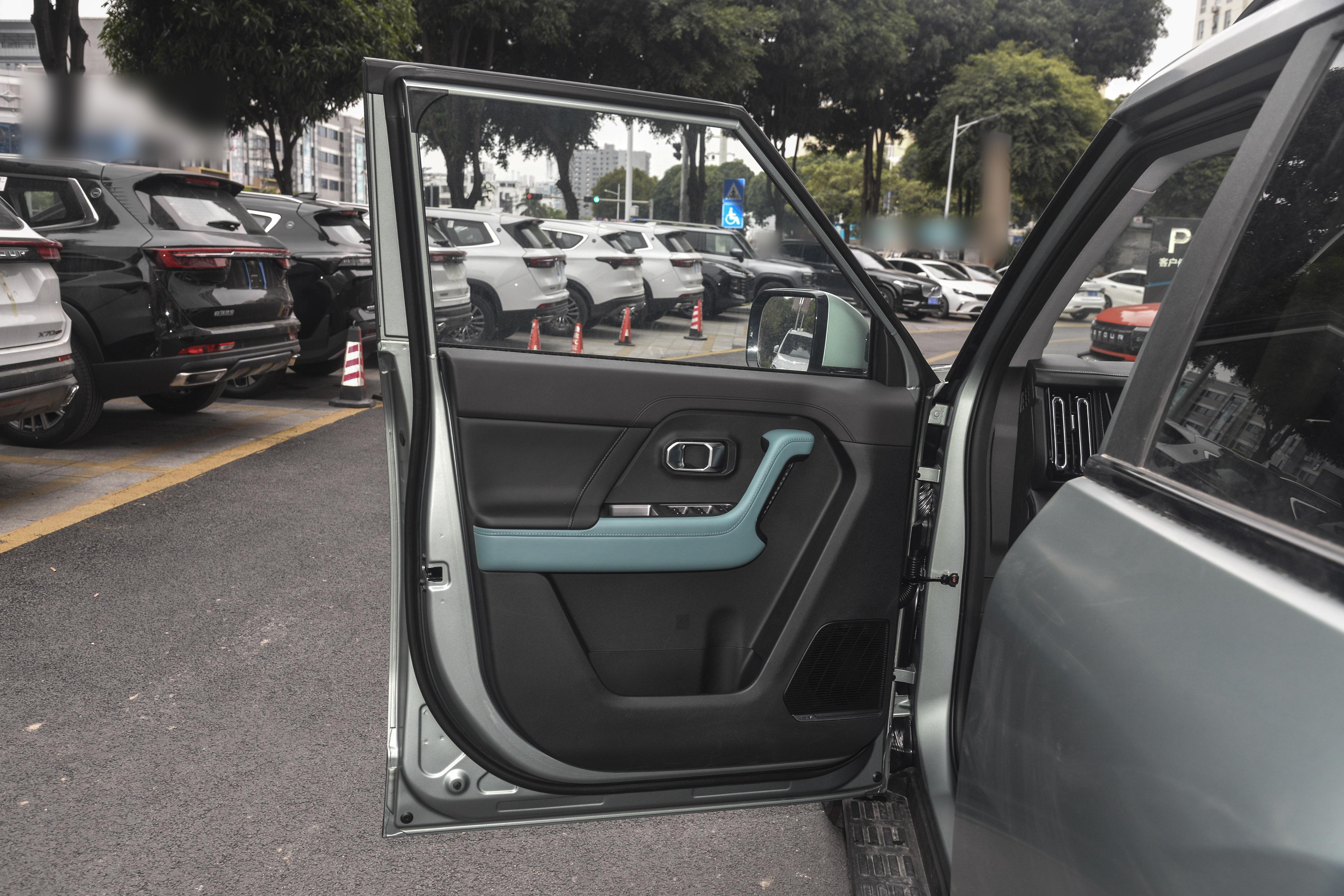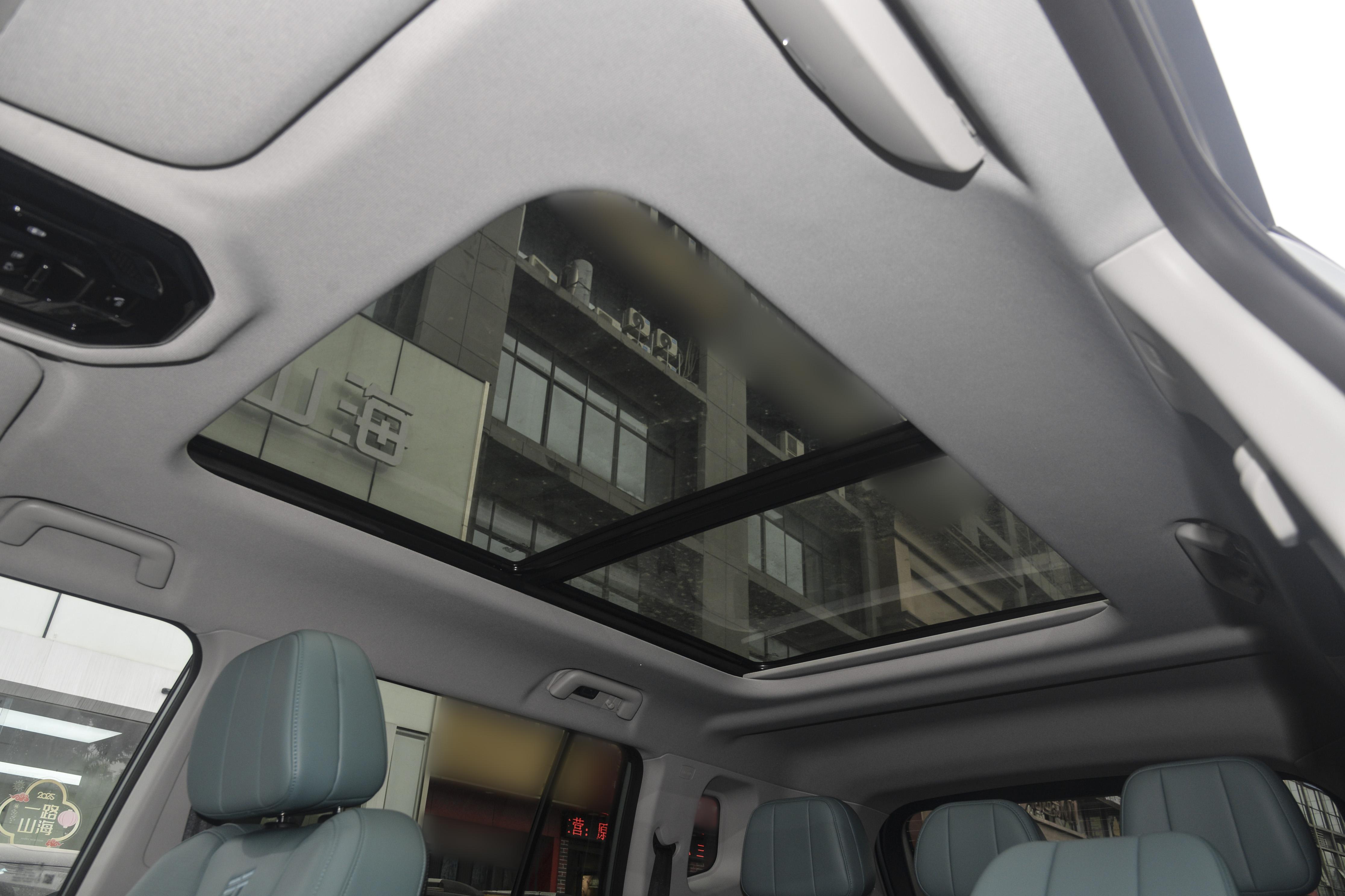 在用料方面,仿皮材质的座椅触感细腻,“舒云坐椅”所采用的10层舒适型结构与云肤革材质,旨在提供更亲肤、更具支撑性的乘坐感受。主驾驶位支持电动调节(前后、靠背角度、高低),副驾驶位为手动调节(前后、靠背角度),且前排座椅功能包括加热、通风和记忆,极大地提升了乘坐舒适性。得益于2810mm的轴距和方正的车身结构,其内部乘坐空间表现较为宽裕。以一名身高180cm的体验者为例,将前排座椅调整至合适的驾驶位置后,头部空间仍有一拳以上的余量,视野开阔,不会感到压抑。保持前排座椅位置不变,该体验者进入后排,腿部空间拥有接近两拳的距离,头部空间也有一拳左右,整体乘坐感受比较轻松自在。后排座椅支持40:60比例放倒,放倒后可以形成一个近乎纯平的宽敞空间,官方宣传的“2米大床房”概念虽略有夸张,但其强大的装载能力是毋庸置疑的。无论是长途旅行的行李,还是户外露营的装备,都能轻松容纳。同时,全车设计了多达45处储物空间,各种小物件都能找到合适的存放位置,体现了设计师在实用性方面的细致考量。车辆还配备了可开启全景天窗,让车内乘客能够享受阳光和新鲜空气,同时开阔了视野,提升了乘坐的愉悦感。在音响方面,搭载了索尼9高保真扬声器,具备出色的音效表现。