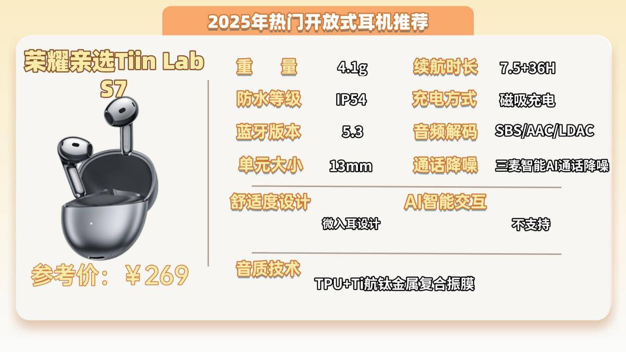 8.荣耀亲选Tiin Lab S7蓝牙耳机