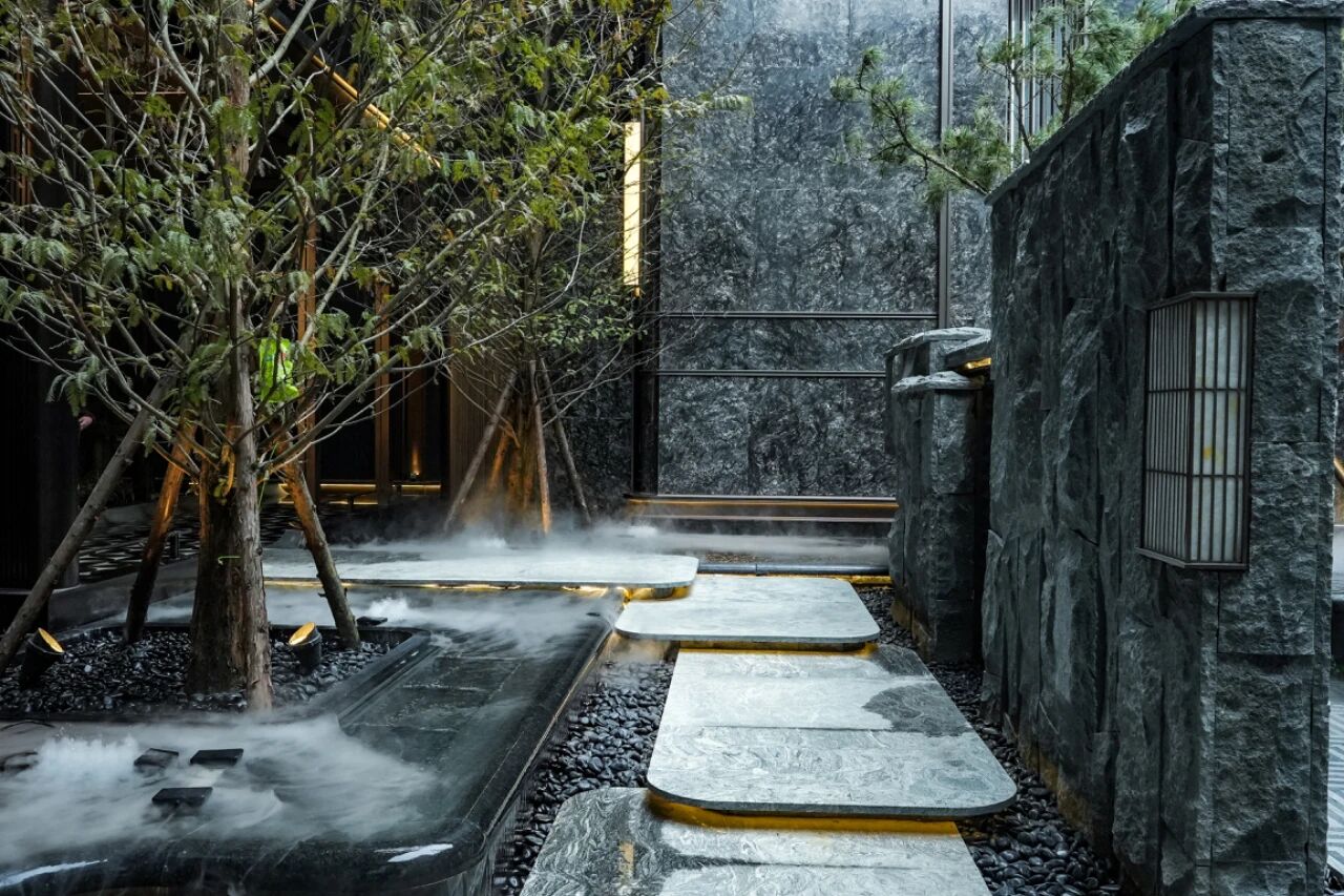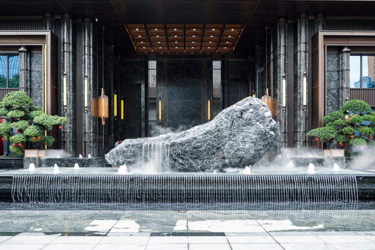 同时,其园林复刻“三院六景”中式山水画卷,打造“新古交织,诗意栖居”的沉浸式园林。撷取「玉之六器、玉有五德」的礼序与灵性,以「溪山行旅」为境,玉为魂、山水为脉,创造兼具文化底蕴与摩登气息的空间意境。