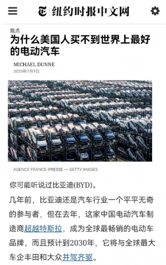 最近,美国《纽约时报》评论称,比亚迪已成为全球最畅销的电动车品牌。预计在2030年,比亚迪将与全球最大车企丰田和大众并驾齐驱。在比亚迪这样的民族企业带领下,中国已经取代了底特律,成为全球汽车工业的中心。