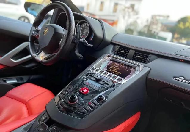 个人觉得这辆兰博基尼LP700内饰最大的亮点就是它的启动键,上面一个红色保护罩看上去特别有感。