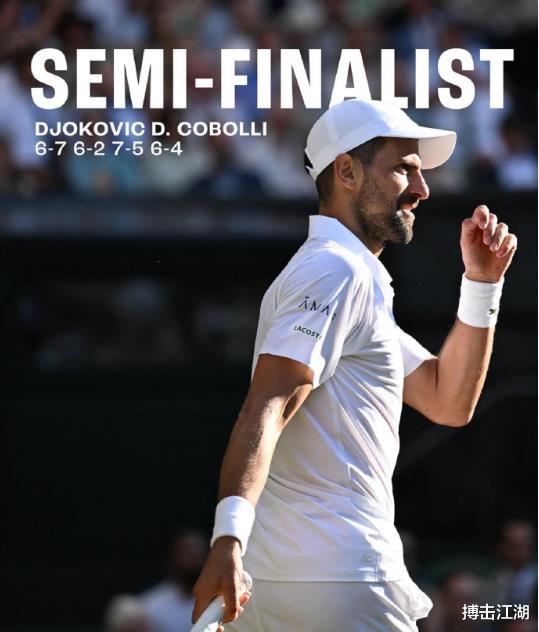 【文/搏击江湖】北京时间7月10日凌晨,万众瞩目的2025年温网男单1/4决赛上演了两场焦点大战,赛会的7届赛会冠军、6号种子德约科维奇再次上演逆转好戏,在先丢一盘的情况下连赢3盘,最终以6(6)-7、6-2、7-5、6-4逆转22号种子意大利名将科博利,闯入温网4强。