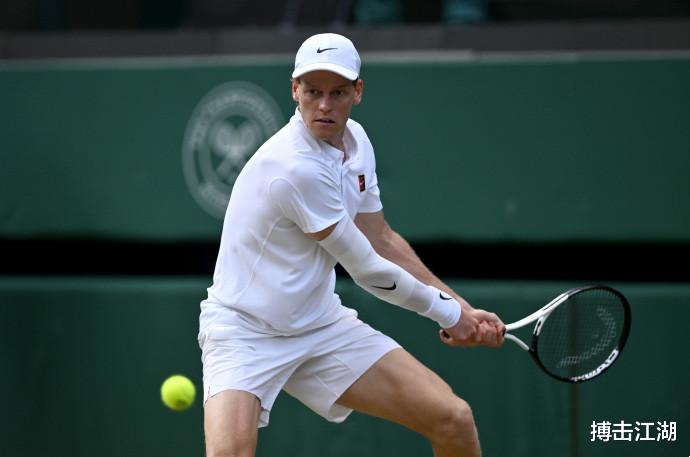 右臂手肘的伤势,对辛纳似乎影响不大。尽管辛纳也戴上了套袖。