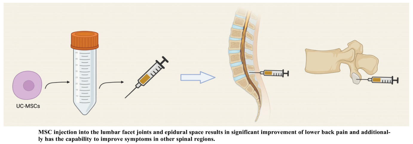 该案例患者为一名47岁男性,患有严重腰背痛长达13年,多种保守治疗均效果不佳。最终他接受了脐带来源间充质干细胞(UC-MSCs)的治疗方案,具体包括: